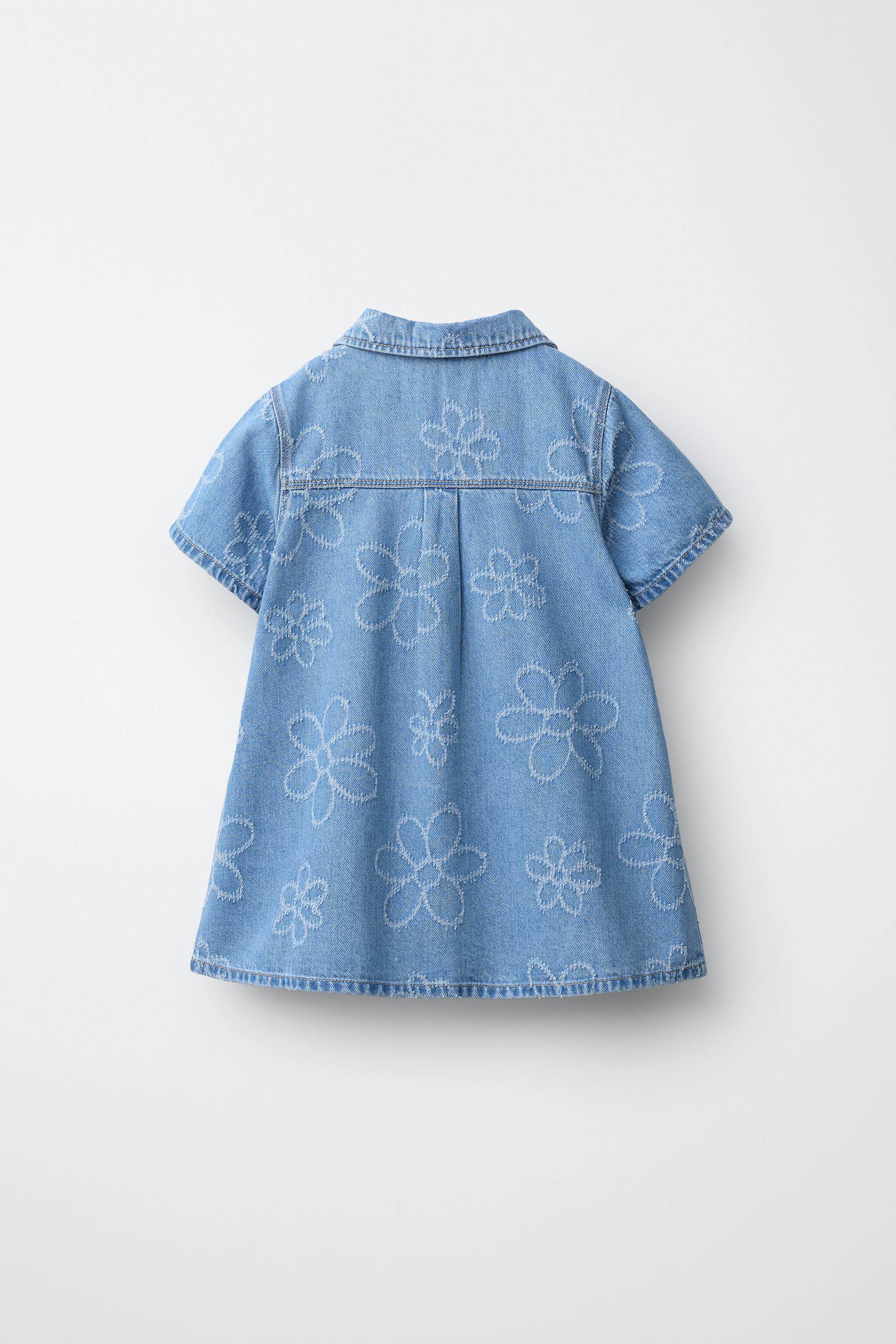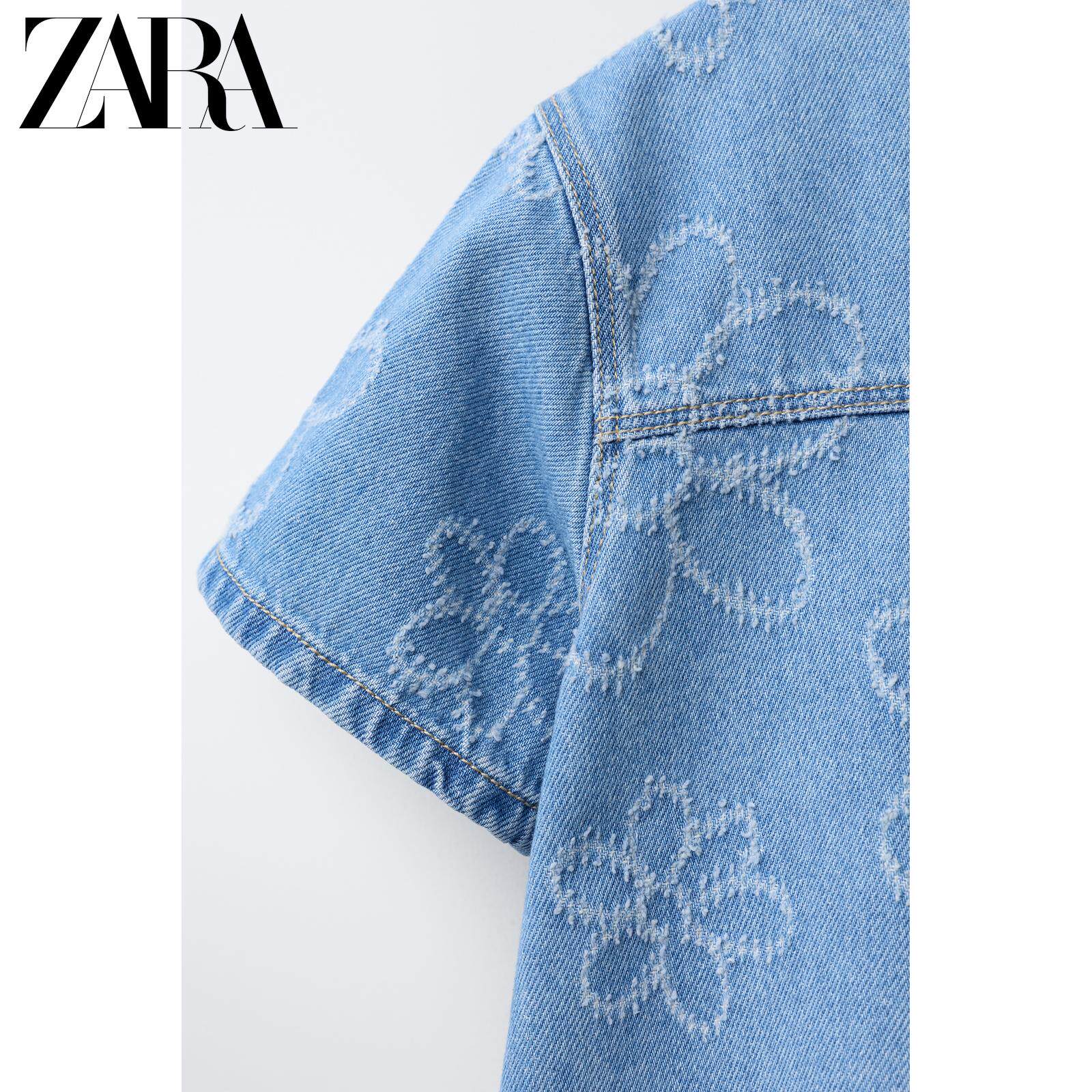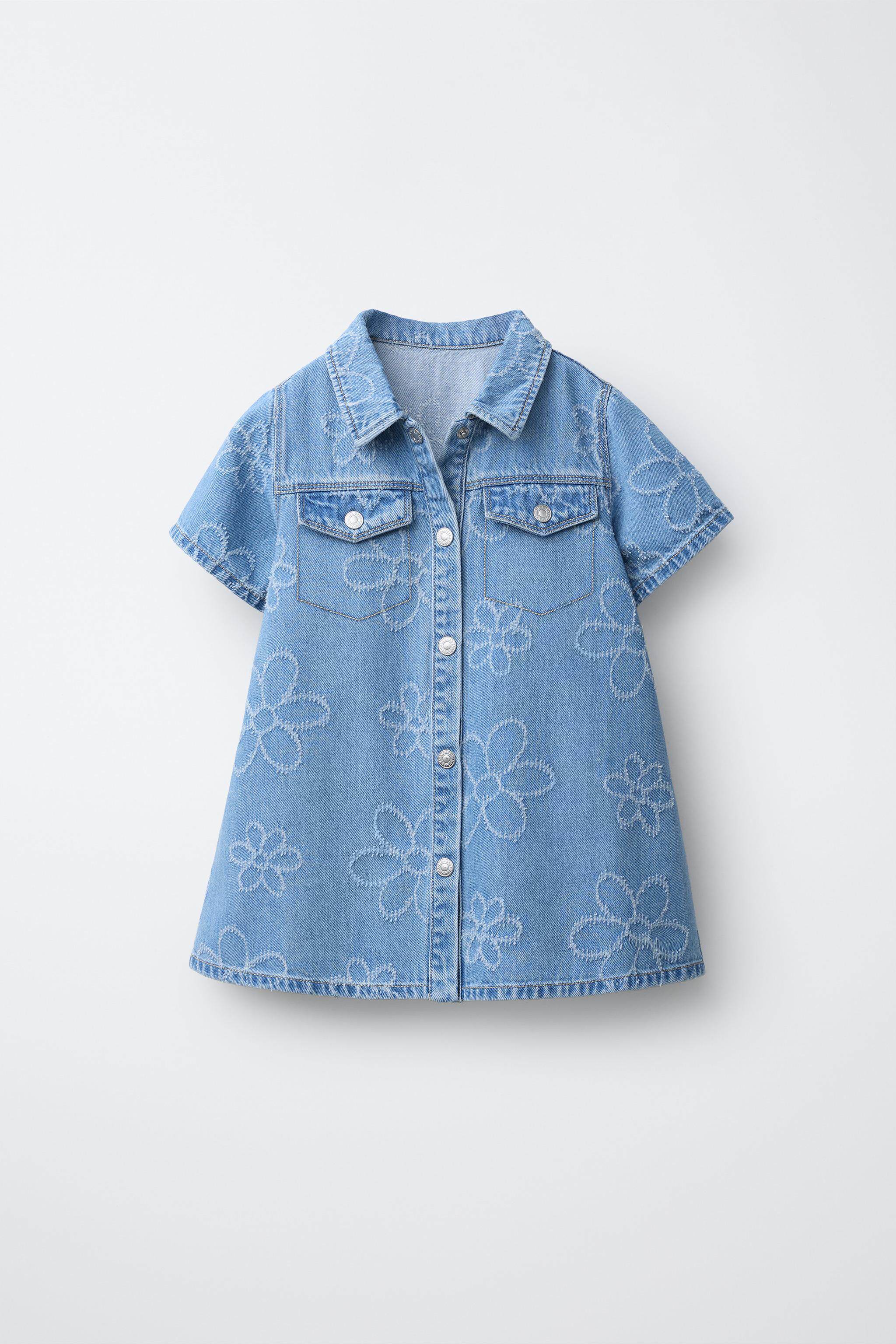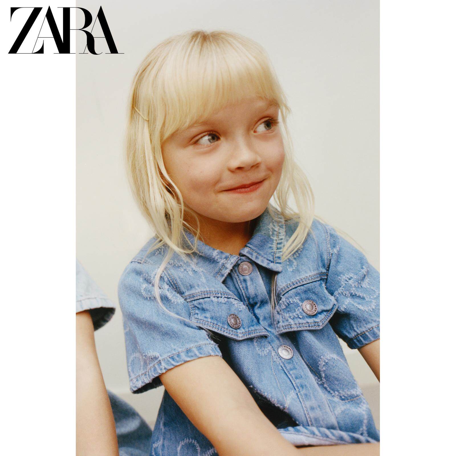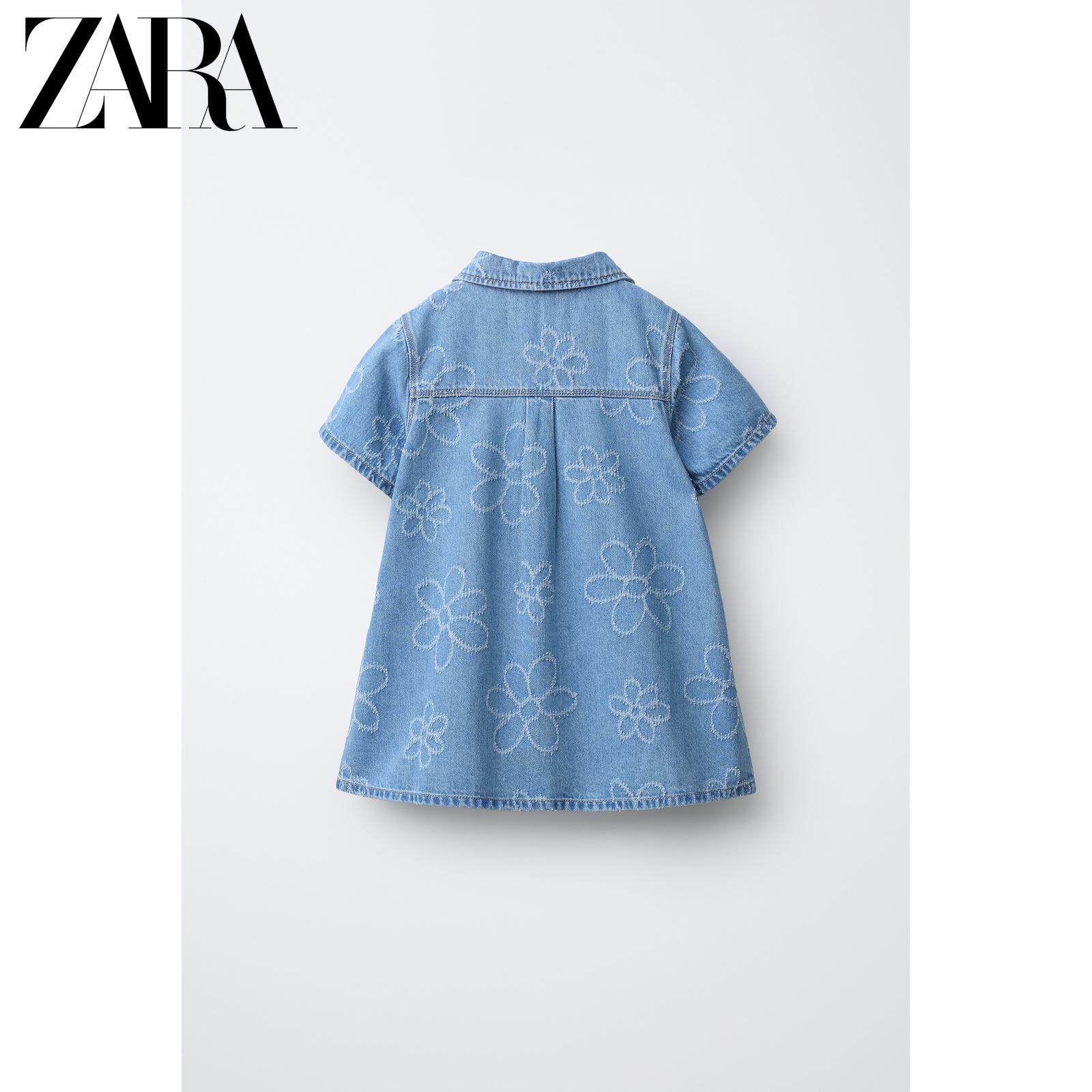 ZARA Новинки весны и лета 2026, для девочек и малышей, джинсовое повседневное платье с короткими рукавами с цветочным принтом 8574557 400