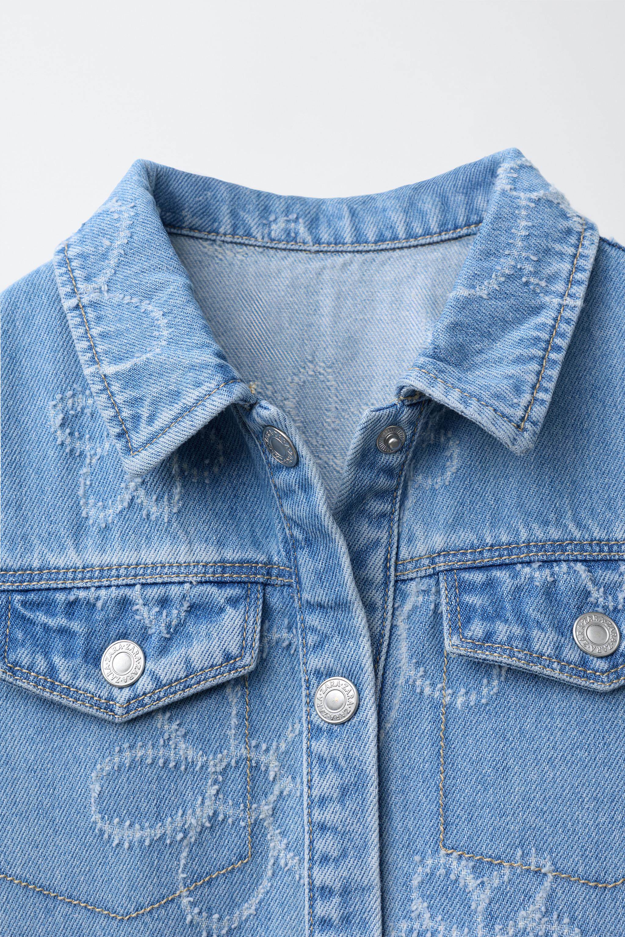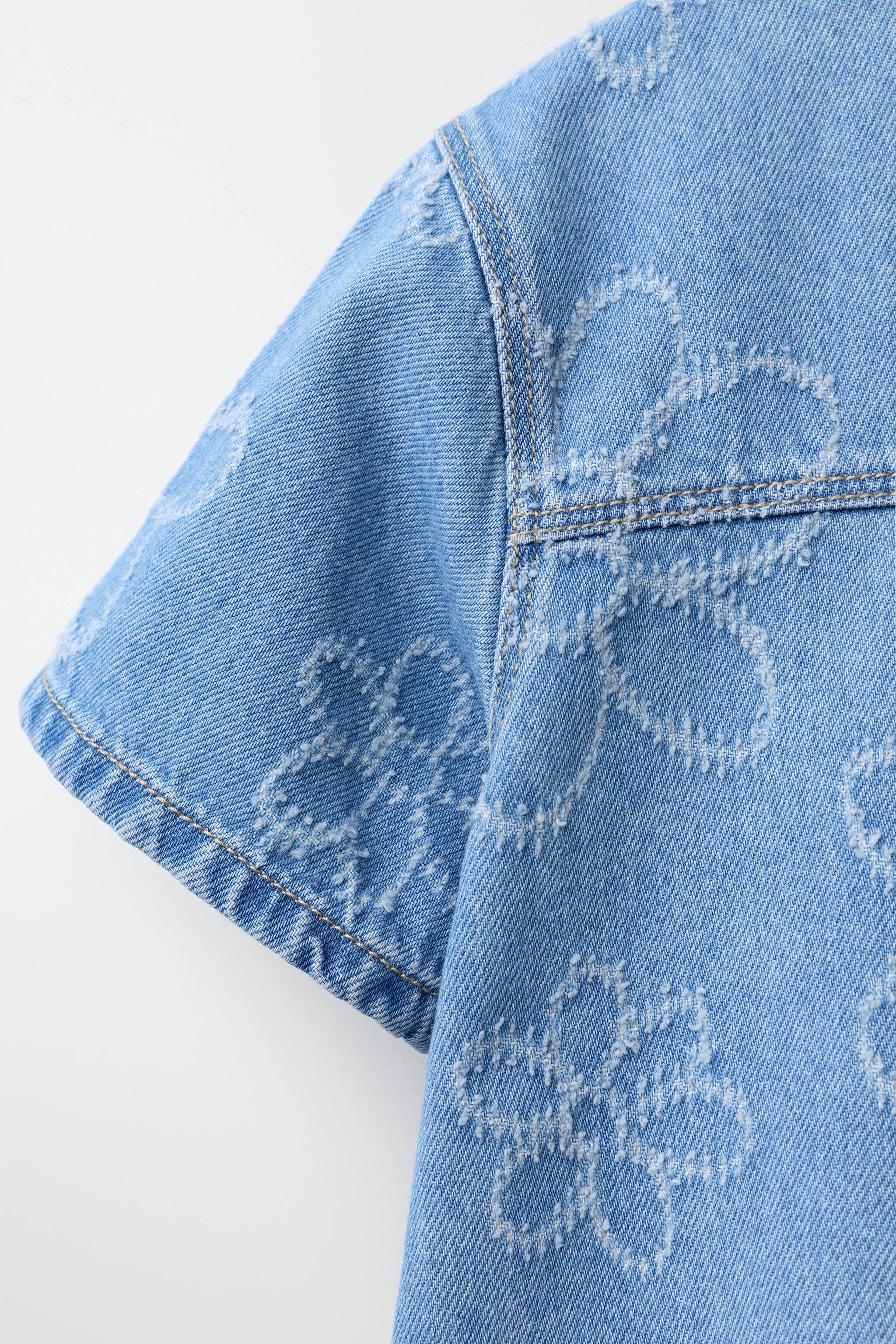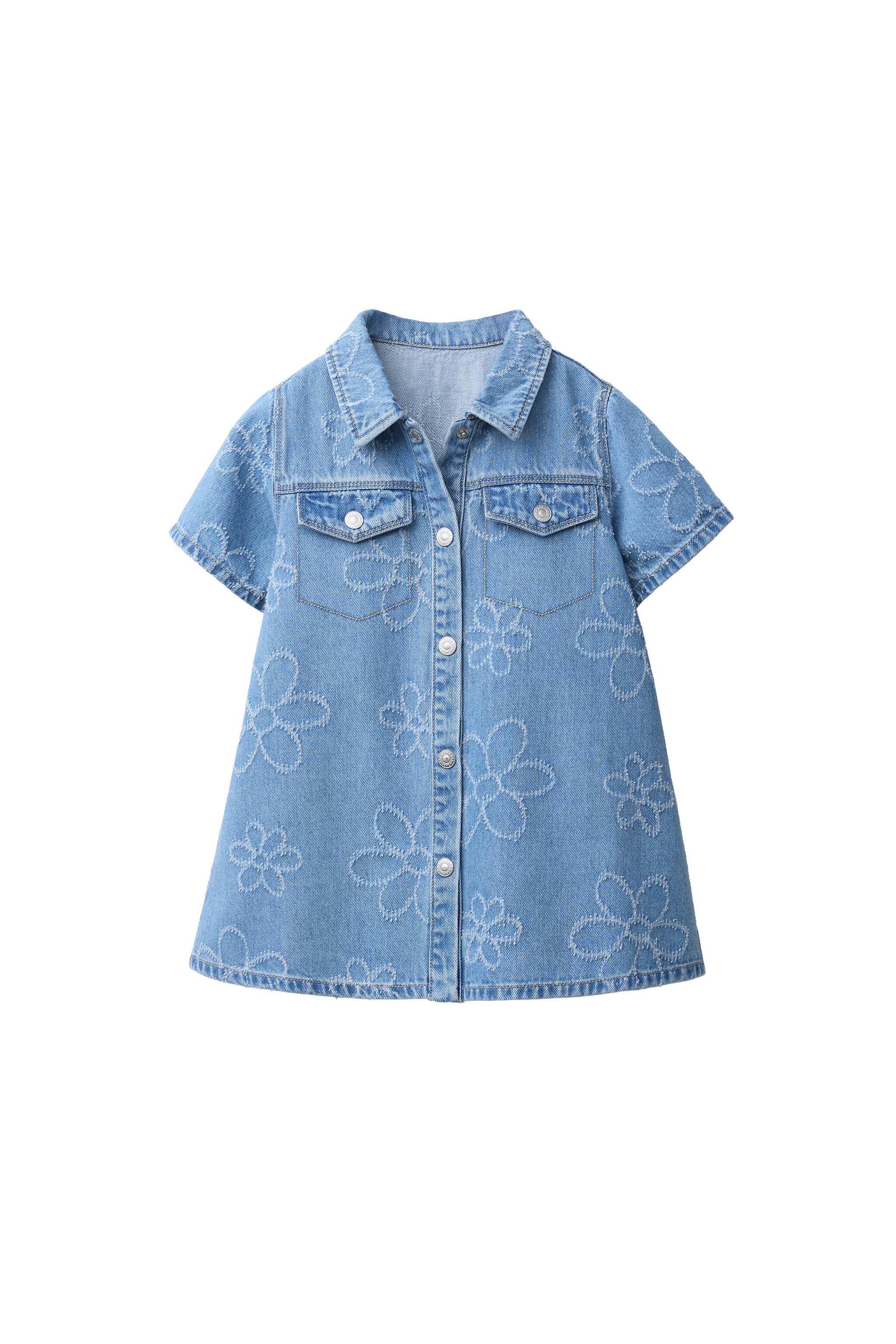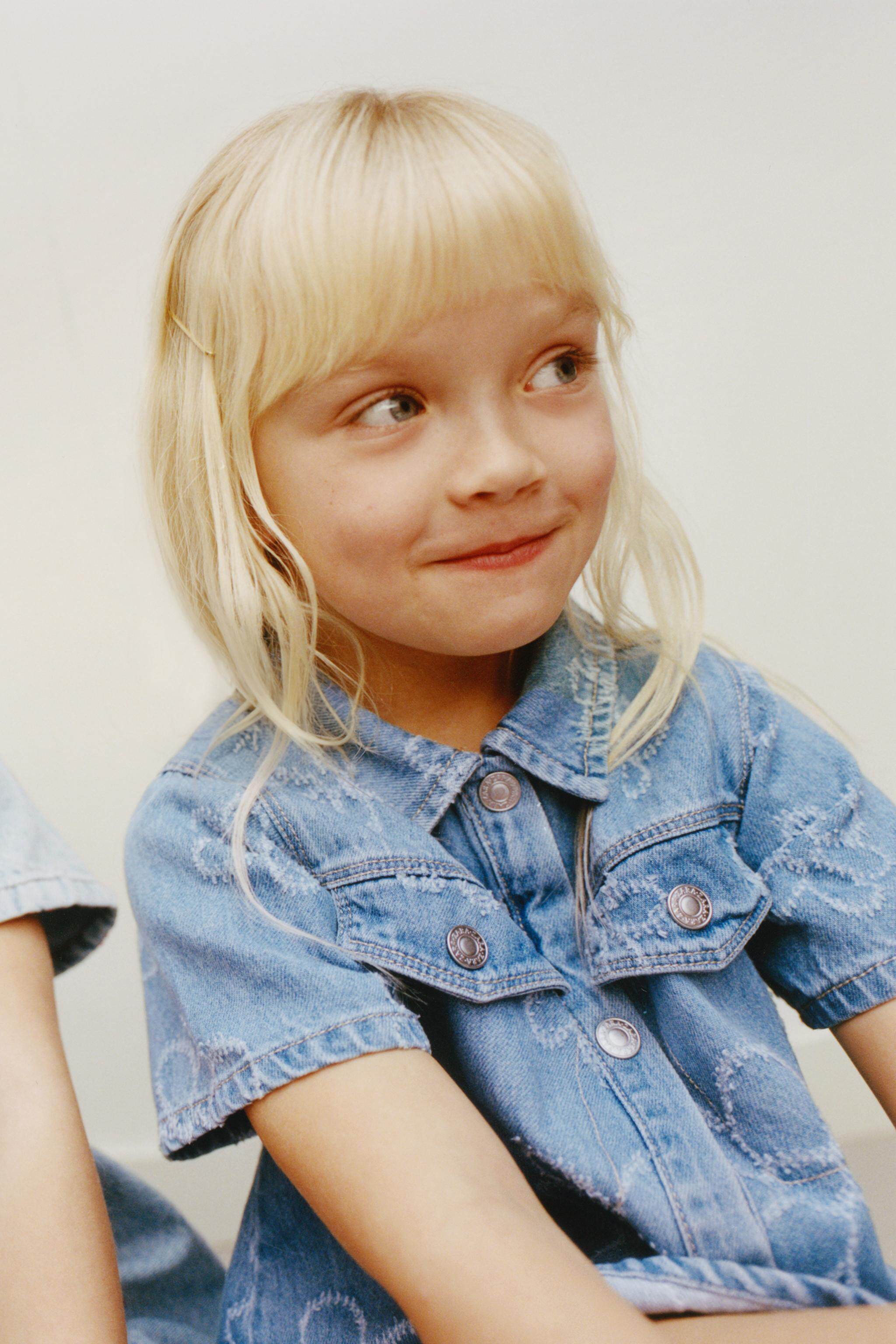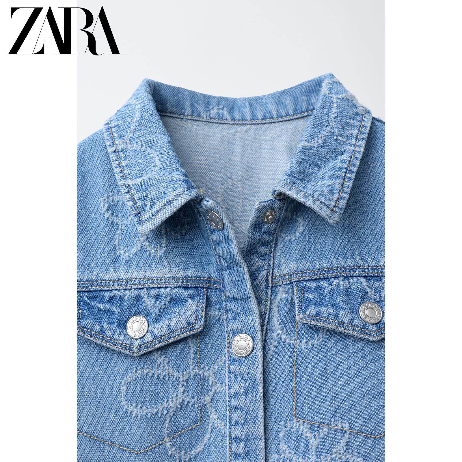 ZARA Новинки весны и лета 2026, для девочек и малышей, джинсовое повседневное платье с короткими рукавами с цветочным принтом 8574557 400