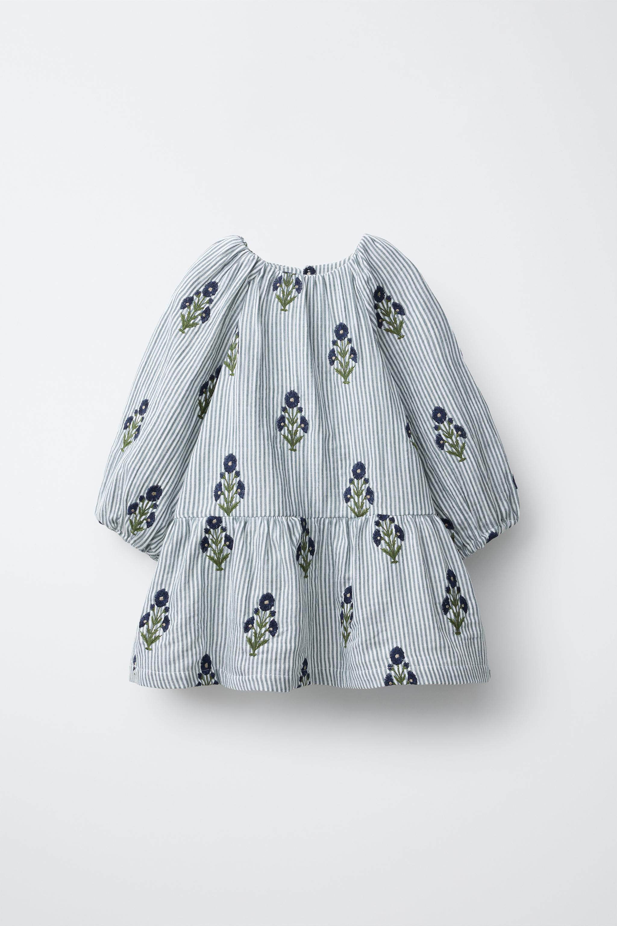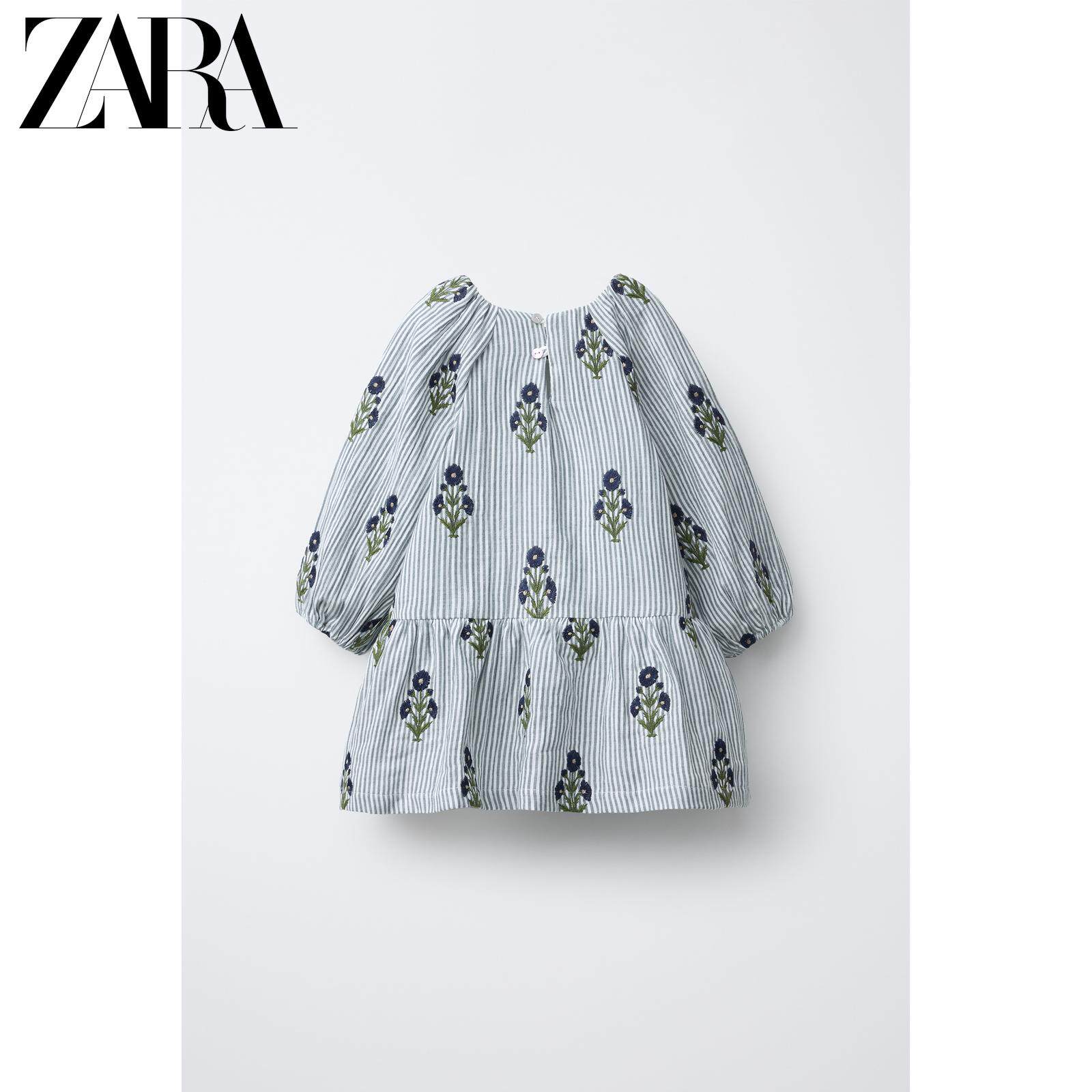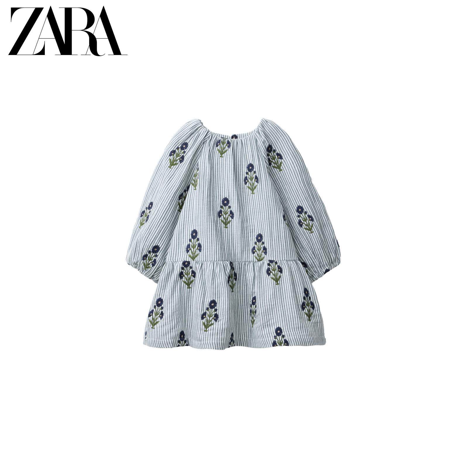 ZARA Новинки весны и лета 2026, для девочек и малышей, полосатое платье с длинными рукавами и цветочной вышивкой 1287319 400