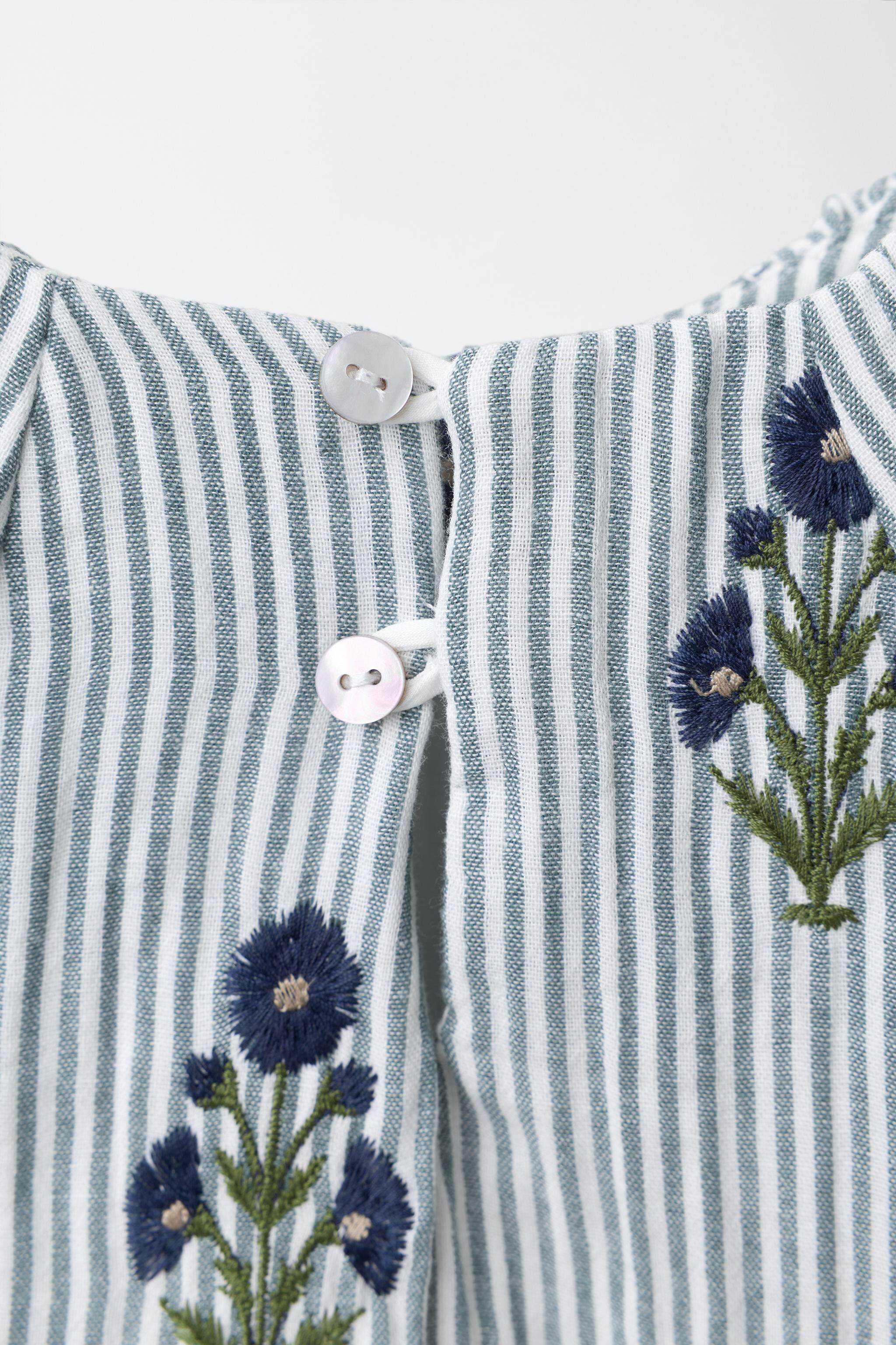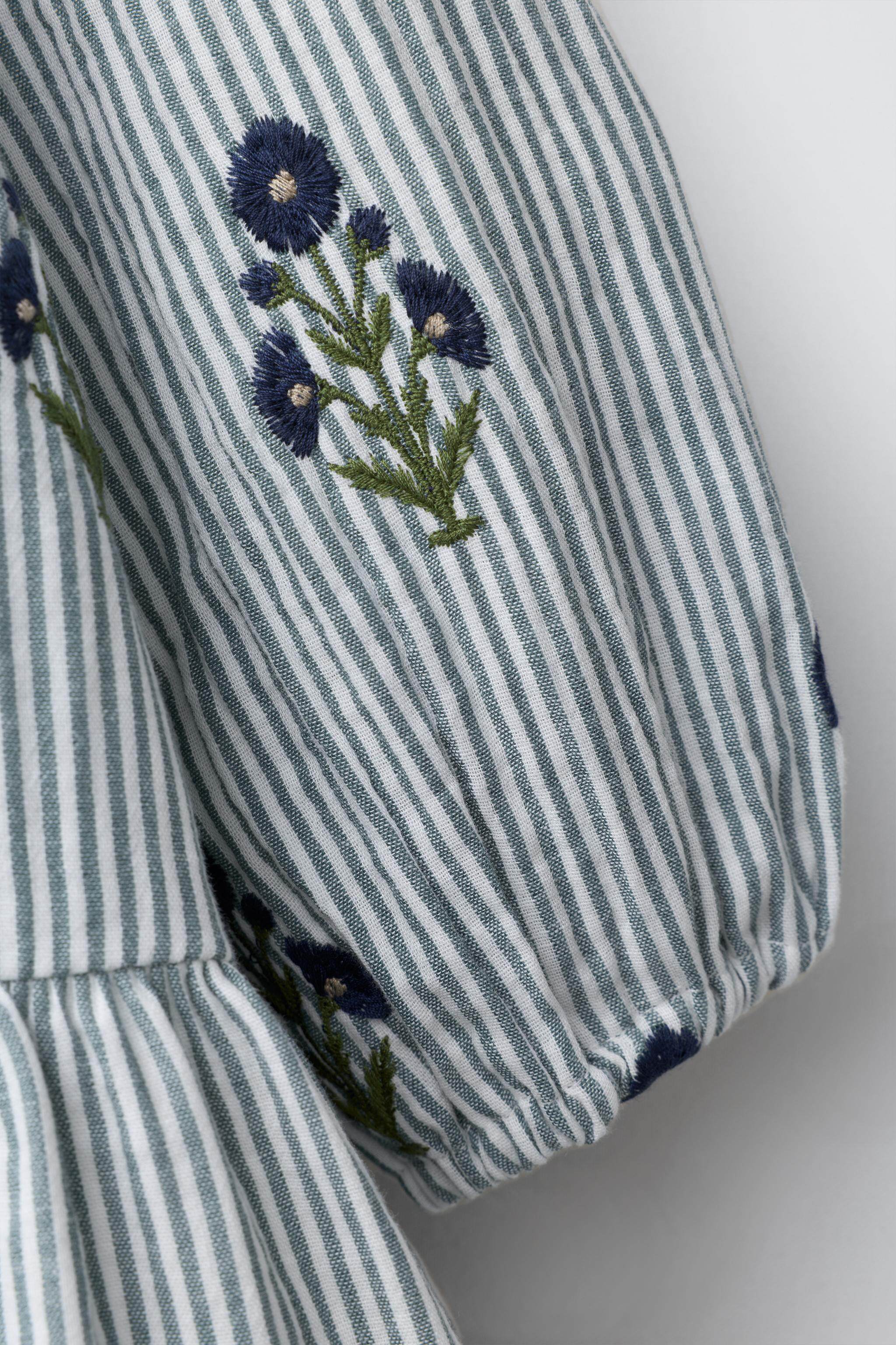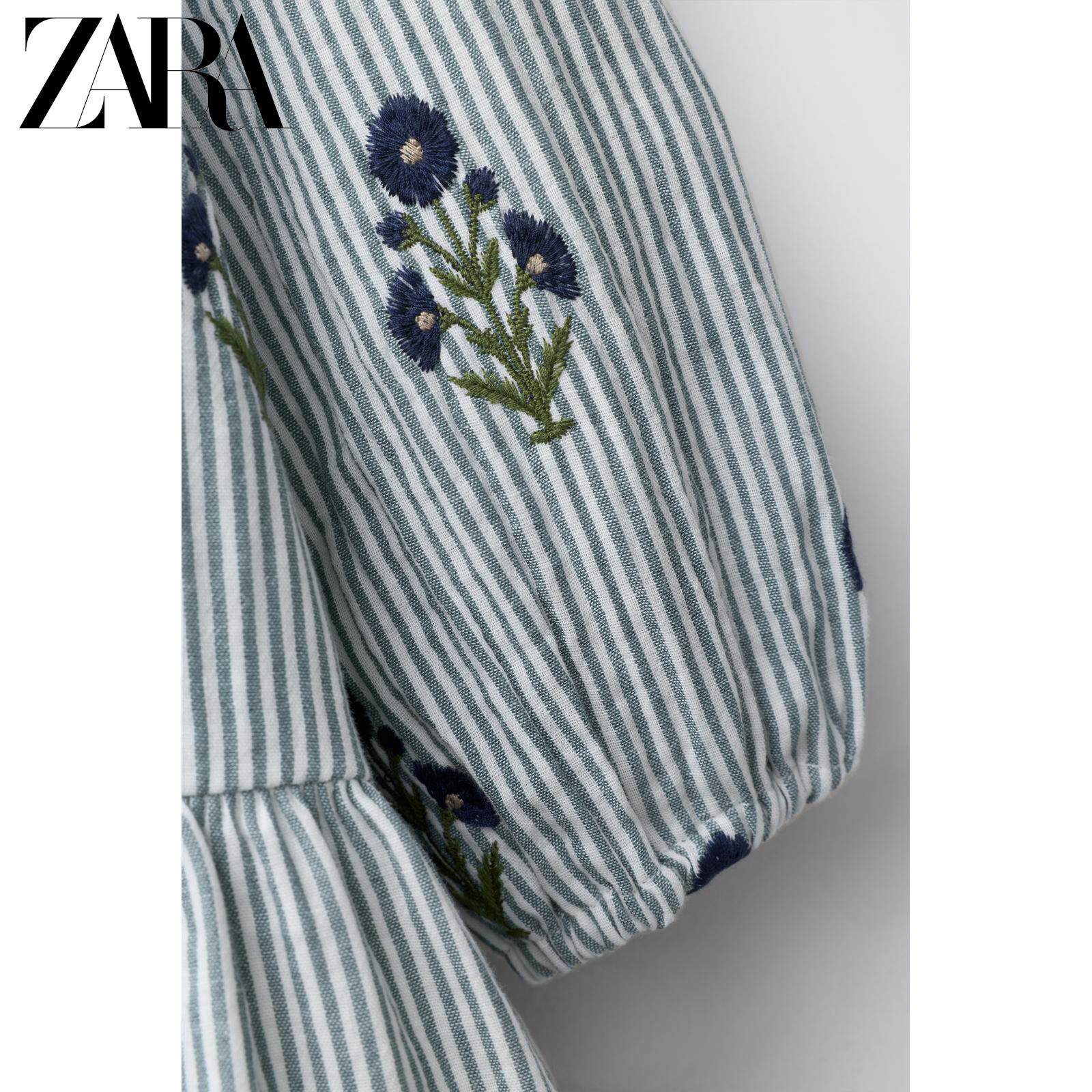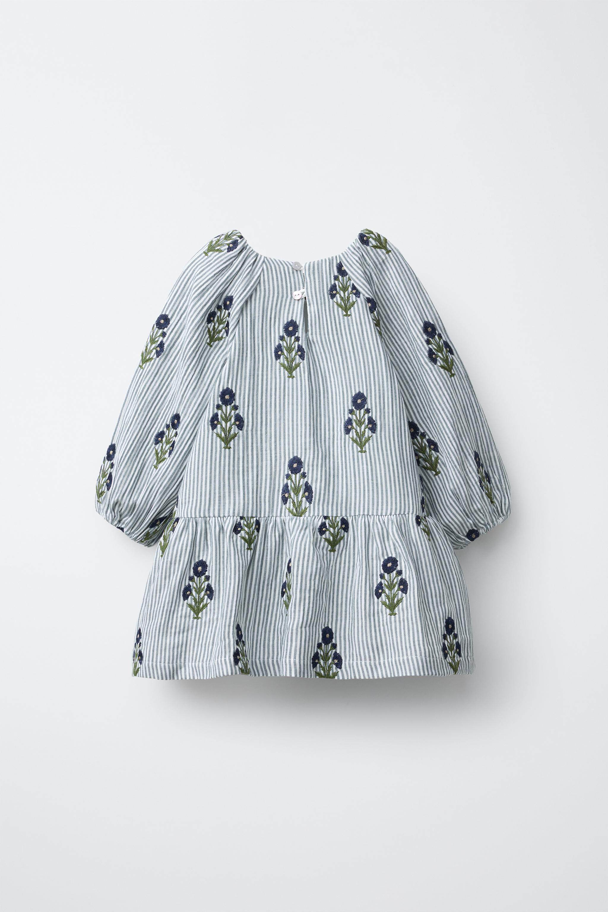 ZARA Новинки весны и лета 2026, для девочек и малышей, полосатое платье с длинными рукавами и цветочной вышивкой 1287319 400