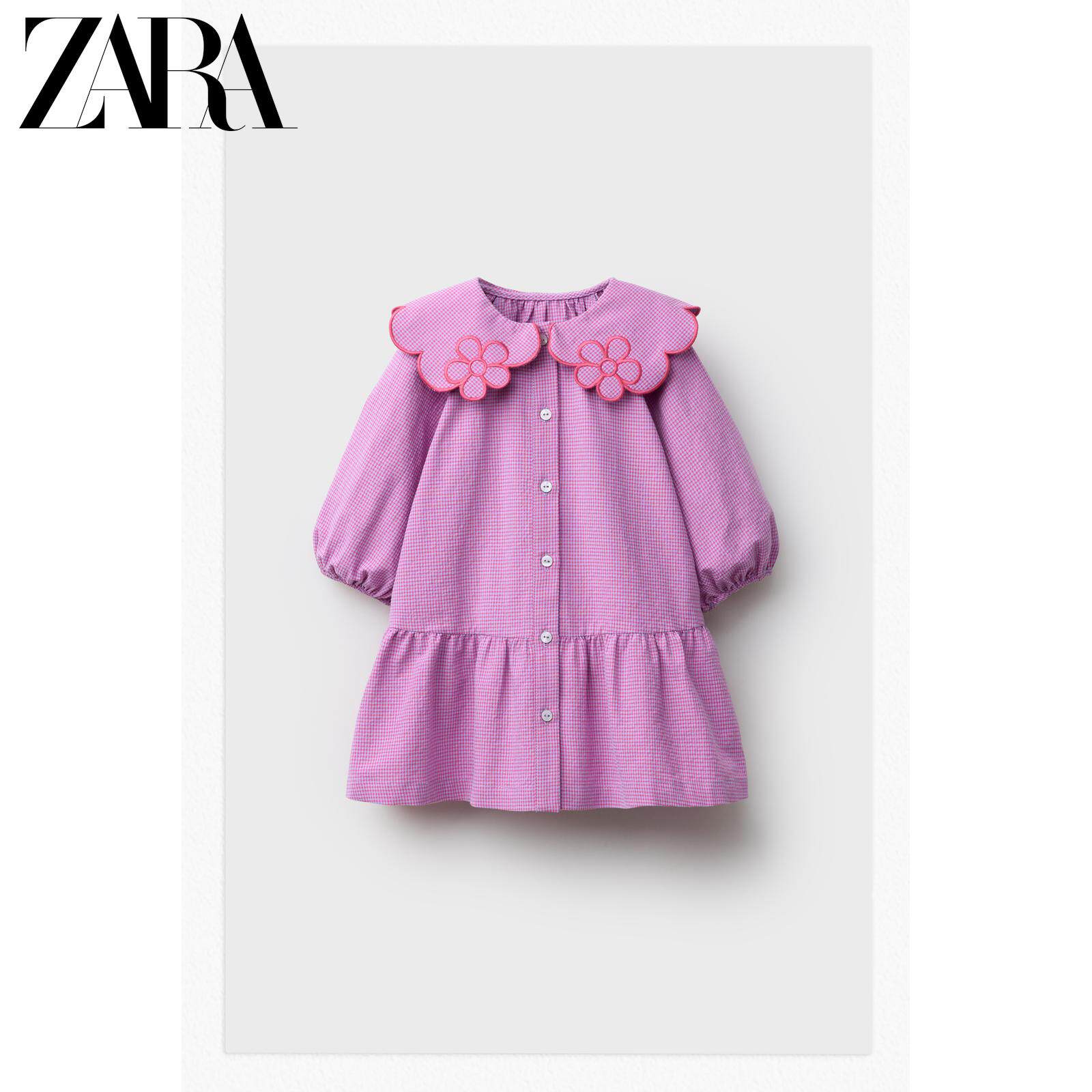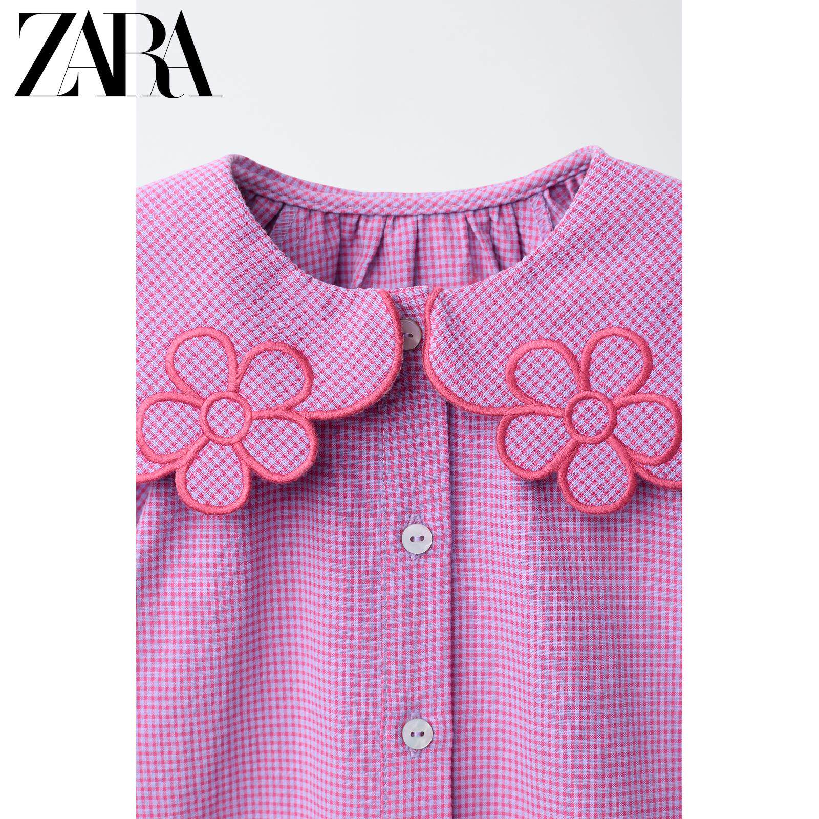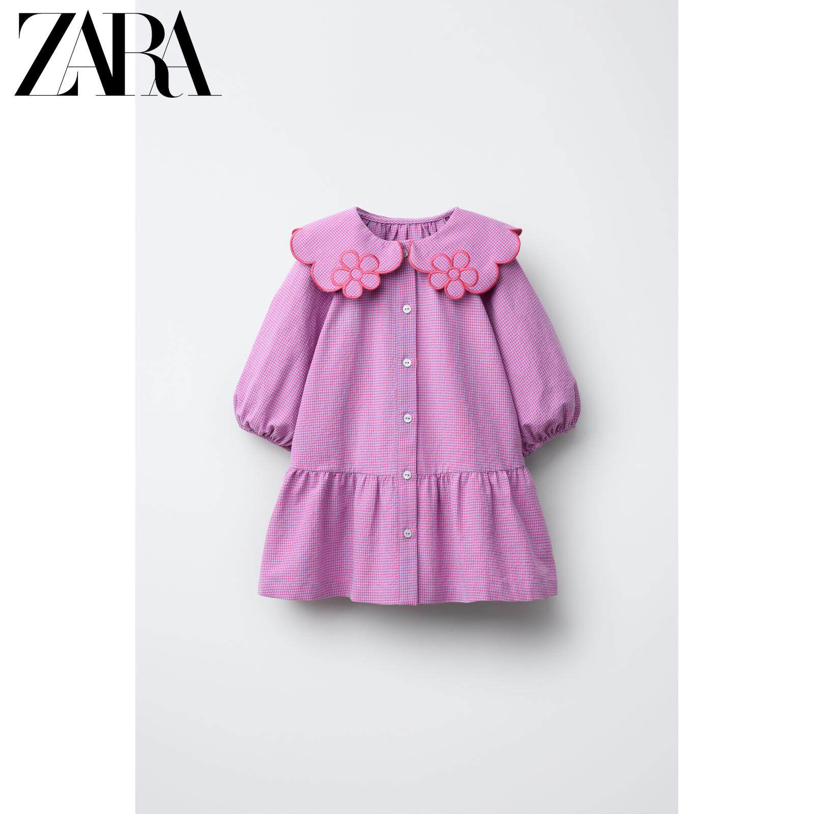 ZARA Новое поступление весны и лета 2026, маленькое клетчатое платье с цветочным вырезом для маленьких девочек и малышей 1302386 629