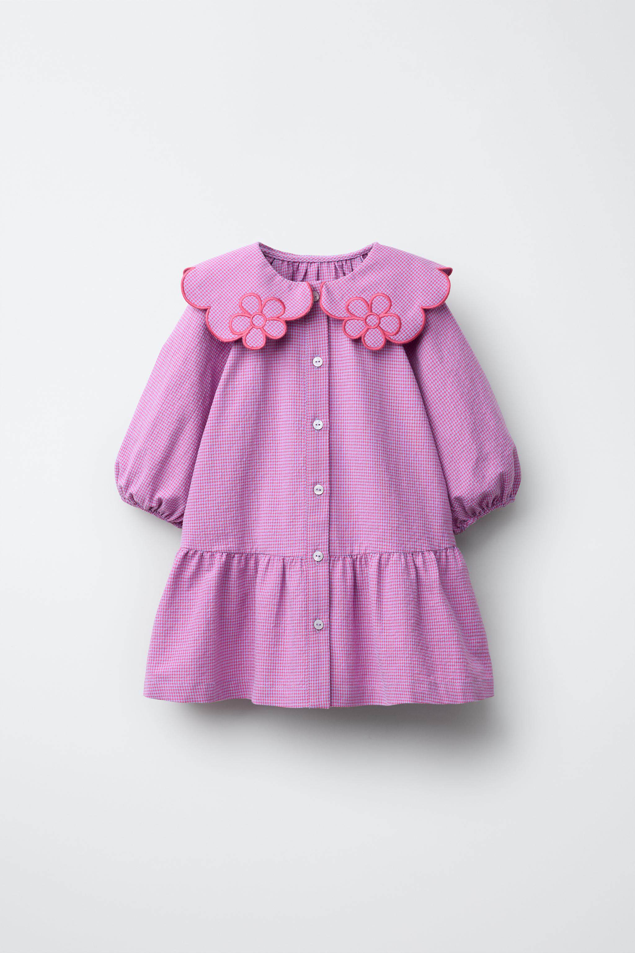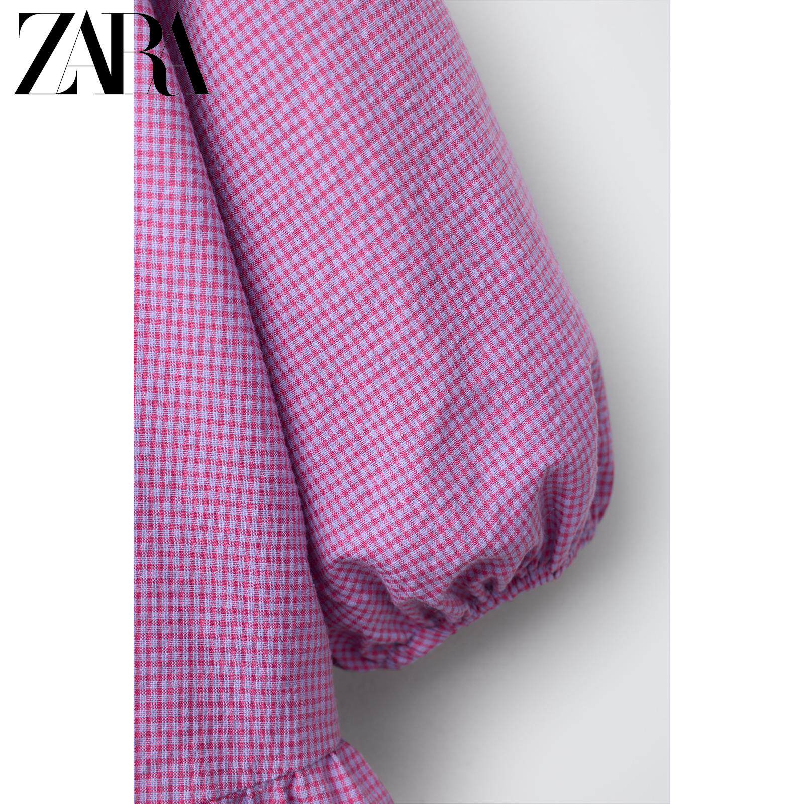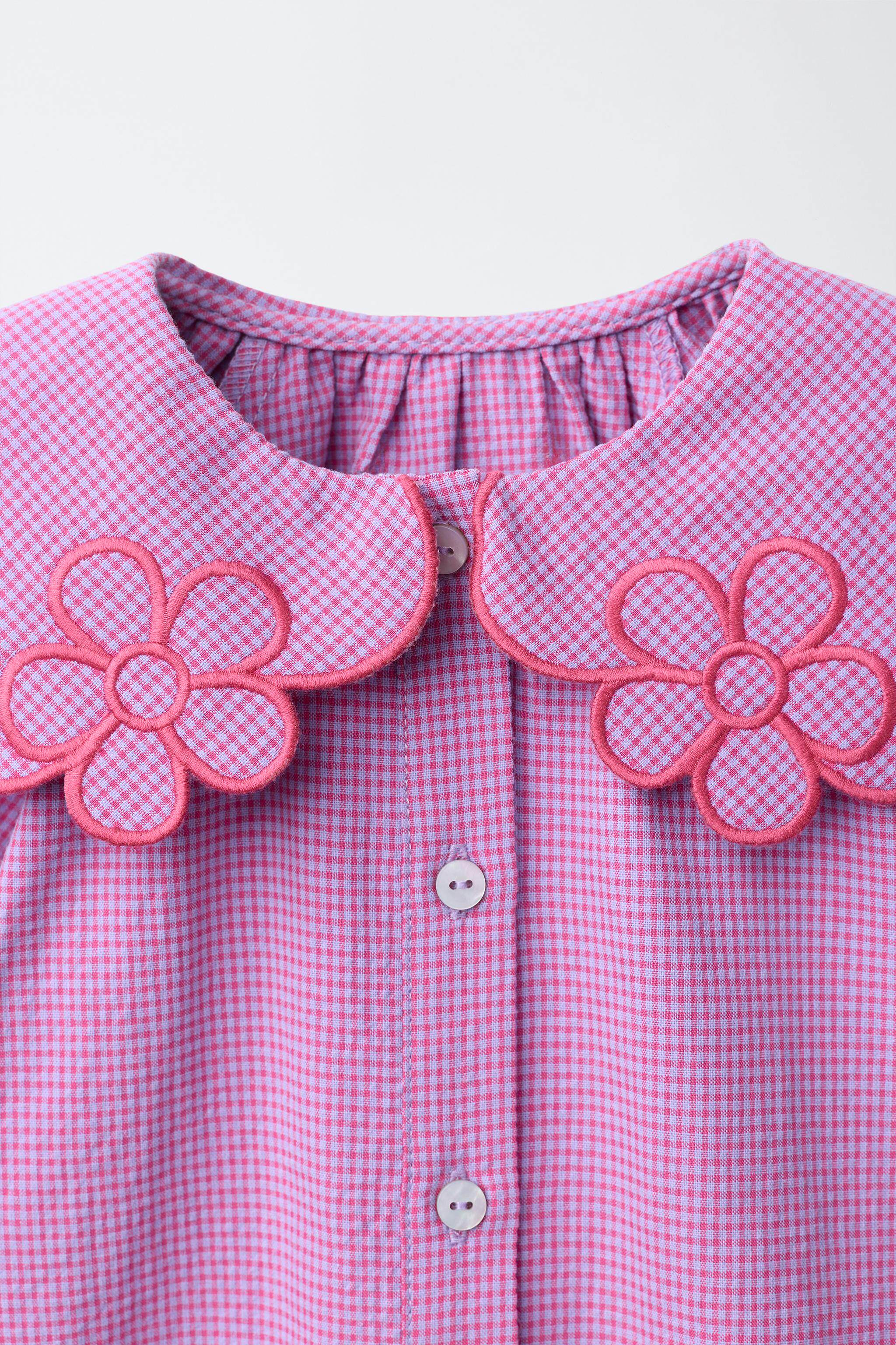 ZARA Новое поступление весны и лета 2026, маленькое клетчатое платье с цветочным вырезом для маленьких девочек и малышей 1302386 629