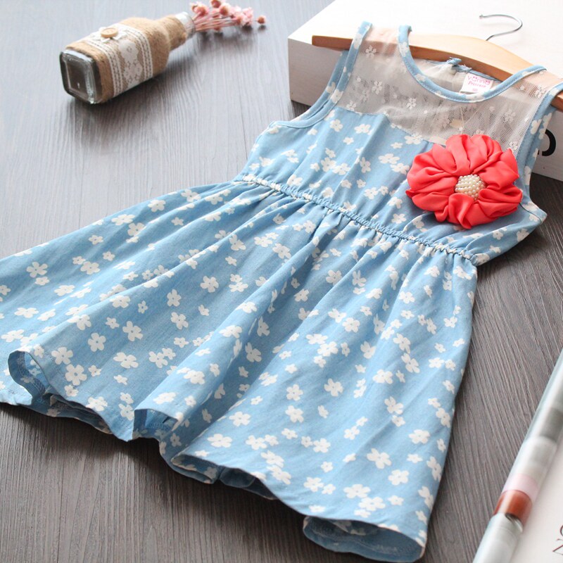 Детское джинсовое платье, джинсовое платье без рукавов, детская одежда, в корейском стиле, цветочный принт