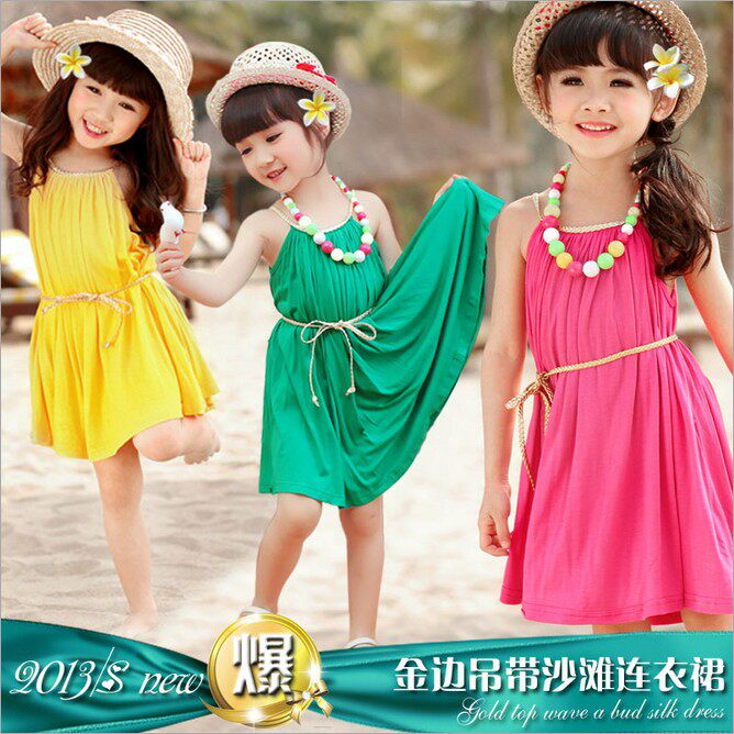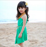 Летняя одежда, детское пляжное платье, ремень, в корейском стиле, стиль бохо