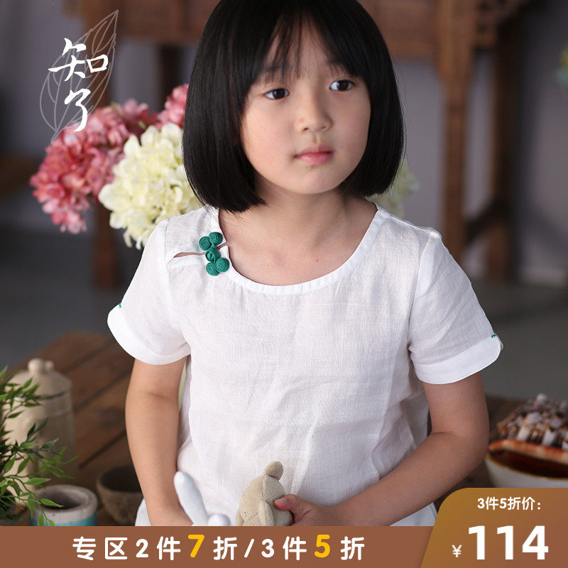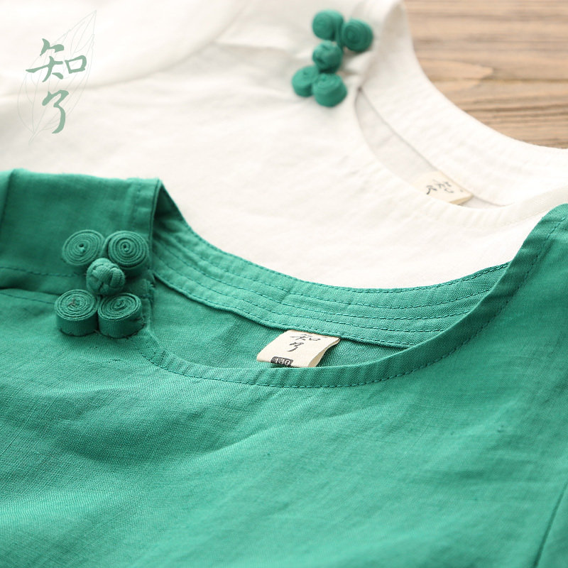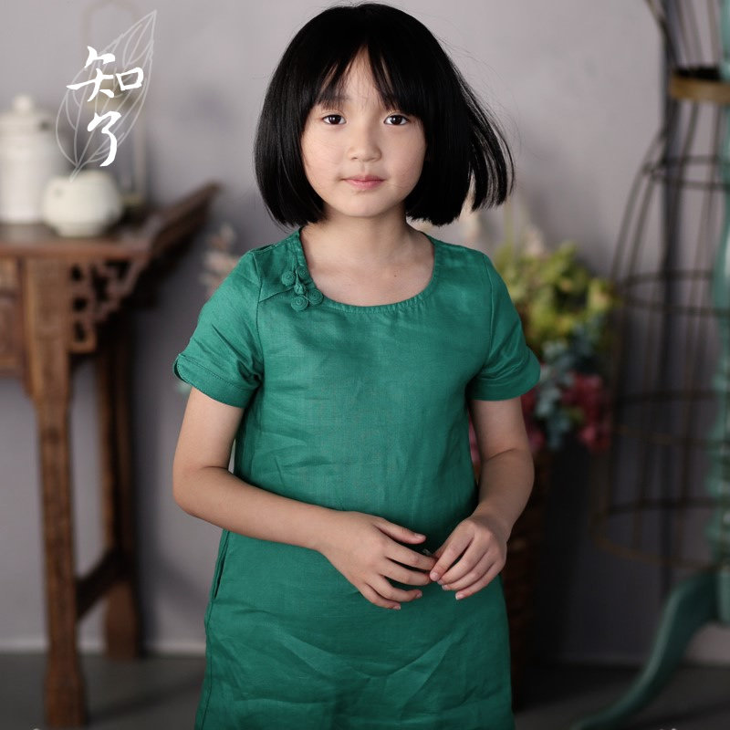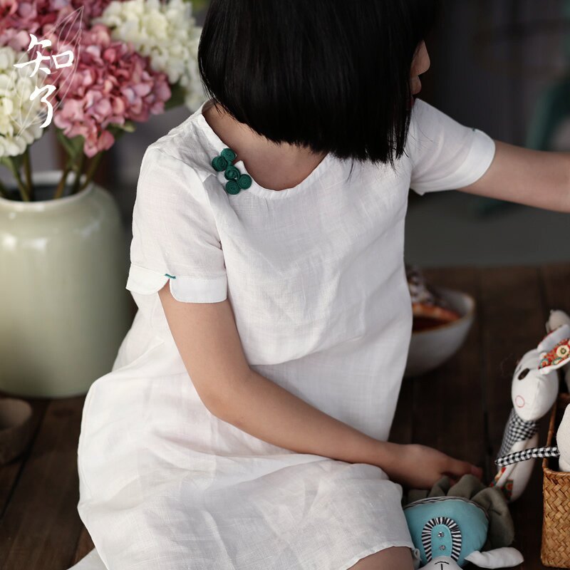 知了 Детская одежда в китайском стиле складывание и литературная летняя одежда Pure Ramie Girls Forking Платье китайские дети K4043