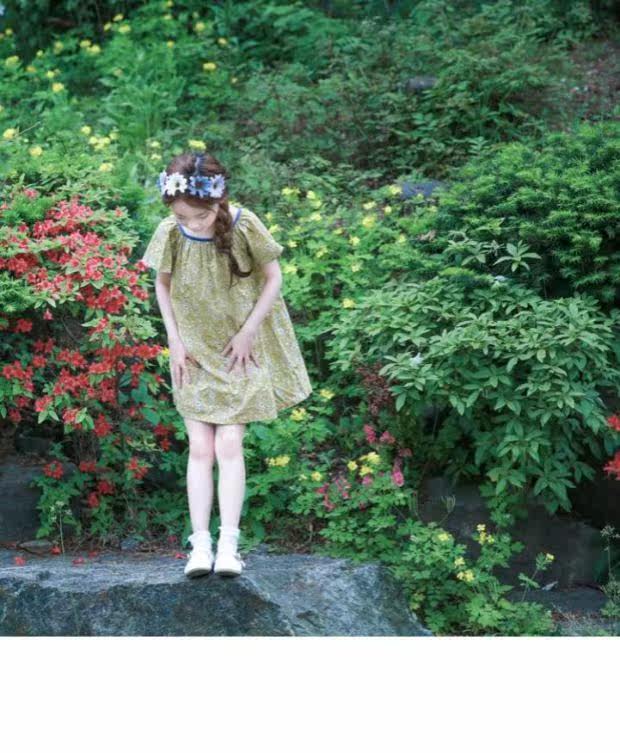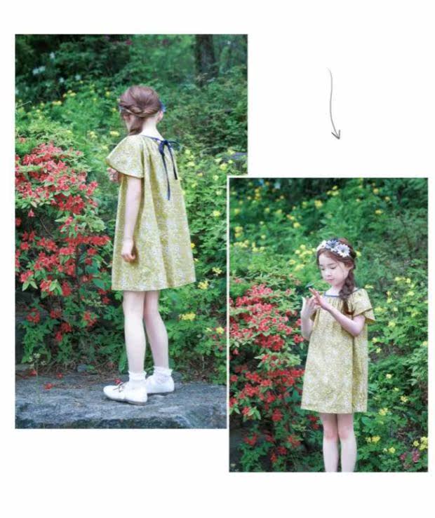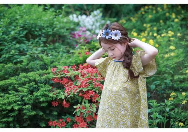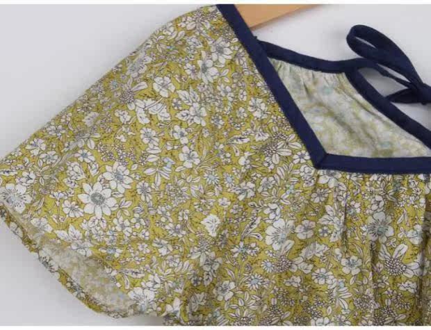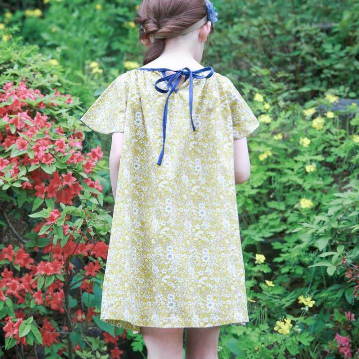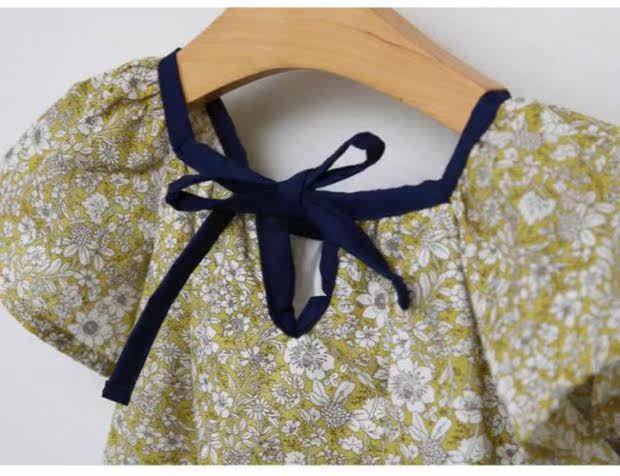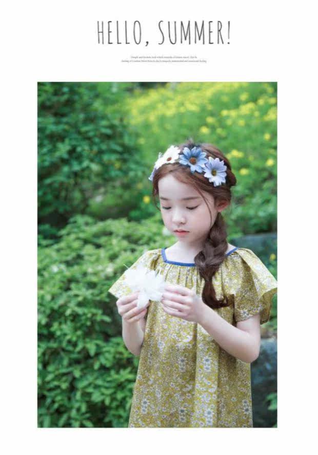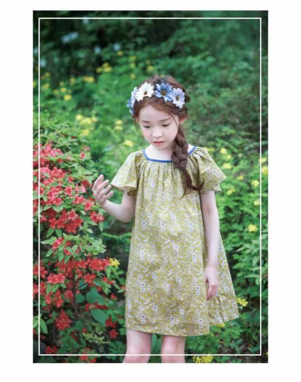 Желтое летнее платье, пляжная юбка на девочку, короткий рукав, А-силуэт, детская одежда, в корейском стиле, в цветочек