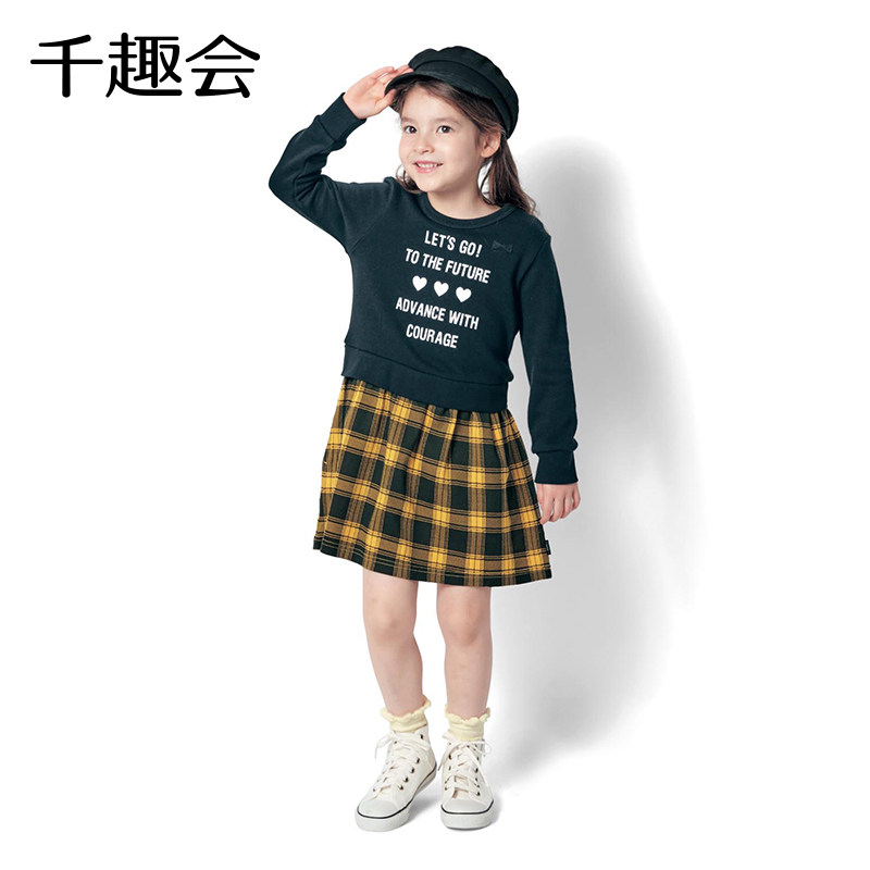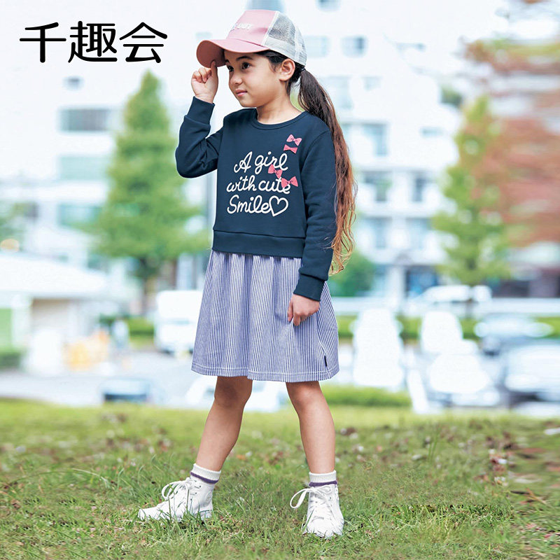 Японская осенняя детская толстовка, длинное платье, детский комплект, длина миди