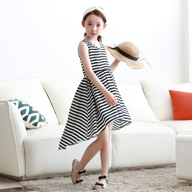 Летнее шифоновое платье без рукавов, в корейском стиле, детская одежда, V-образный вырез