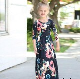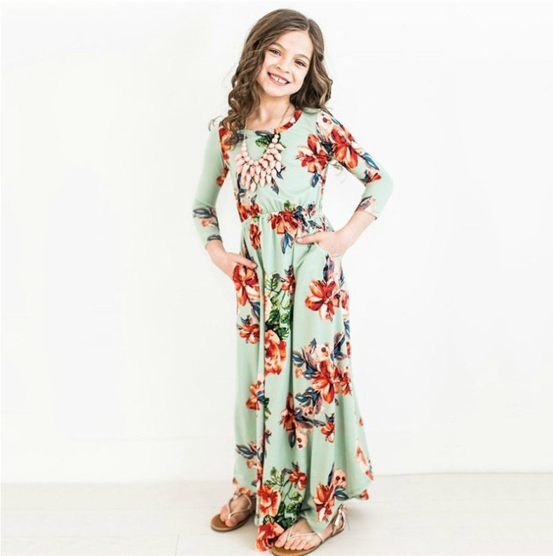 (Трансграничная торговля), брендовый лонгслив для девочек, длинная юбка, платье, европейский стиль, Aliexpress, в цветочек