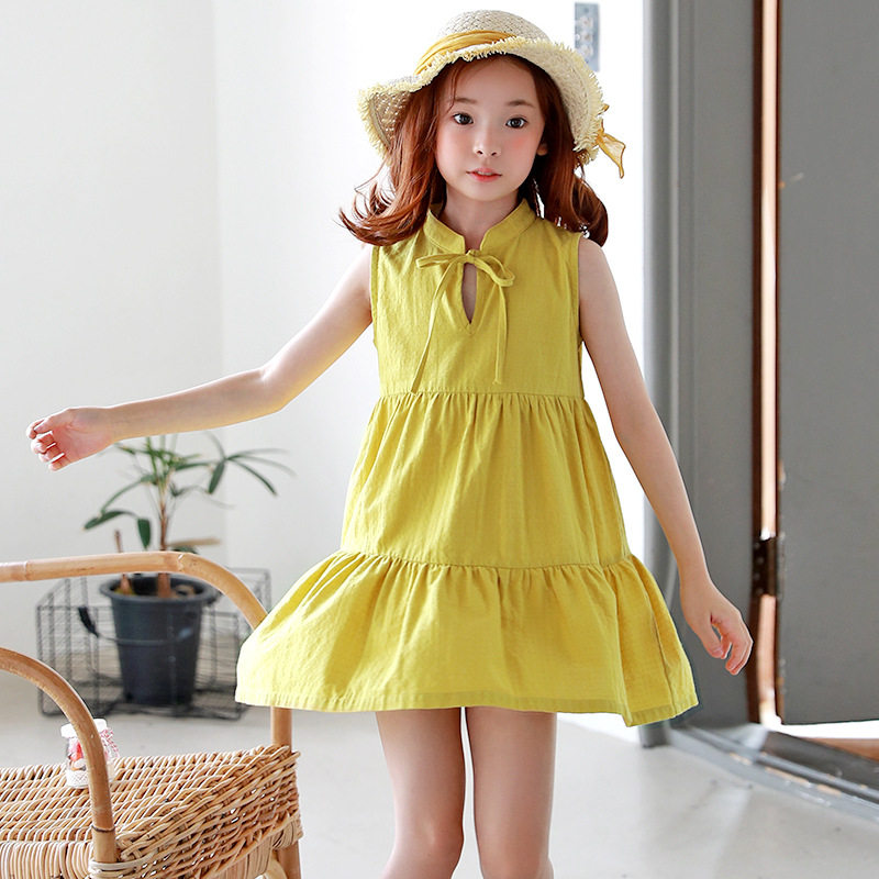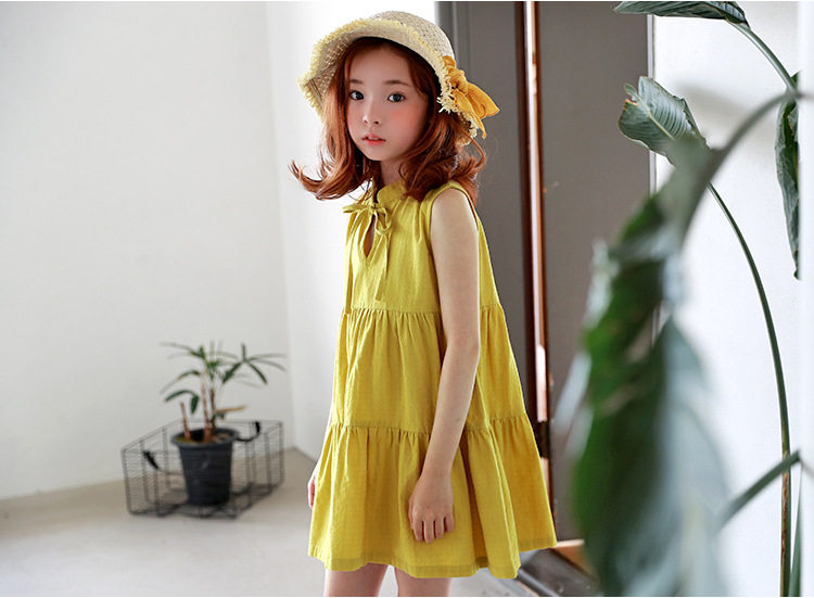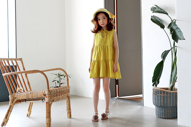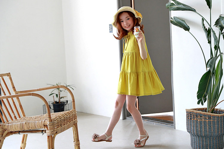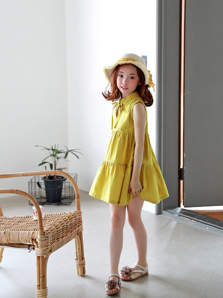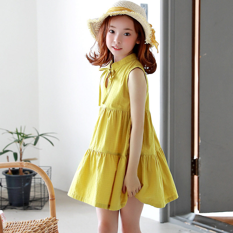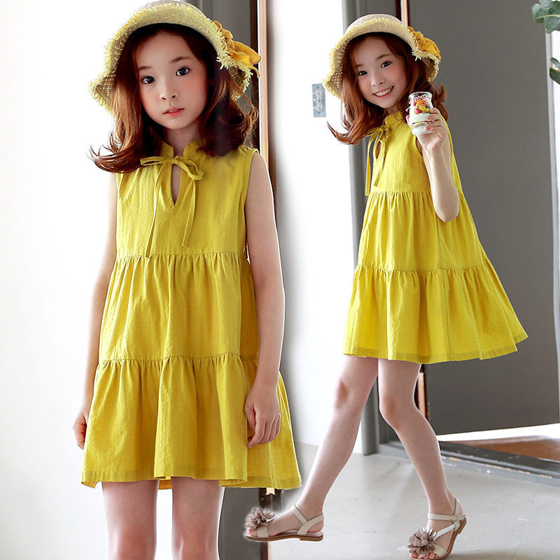 Желтая летняя летняя одежда, платье, детская одежда, в корейском стиле, свободный крой, подходит для подростков