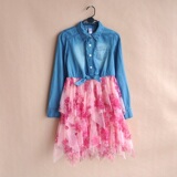 Джинсовая форма, джинсовая юбка, лонгслив, платье, коллекция 2021, детская одежда, подходит для подростков, в цветочек