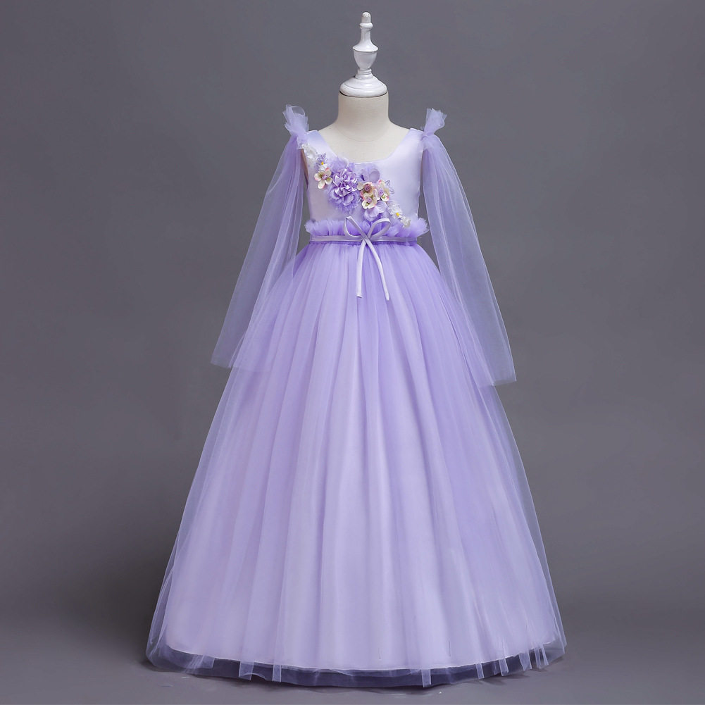 Летний свежий шифоновый наряд маленькой принцессы, длинное платье, в цветочек