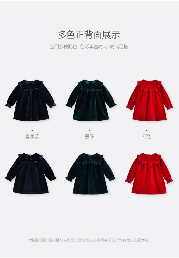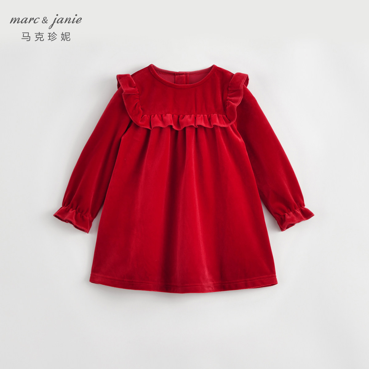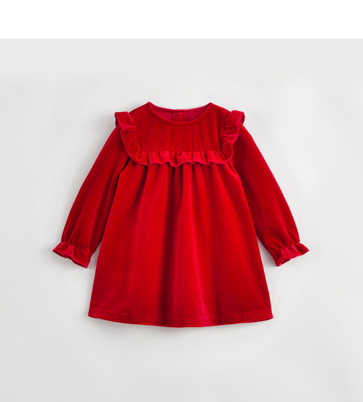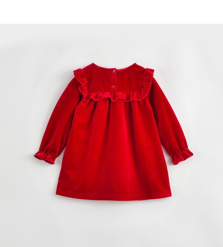 Mark Jenny Girls Lace-Collar Velvet Dress Baby Newge Red Юбка осень и зимний стиль 232033