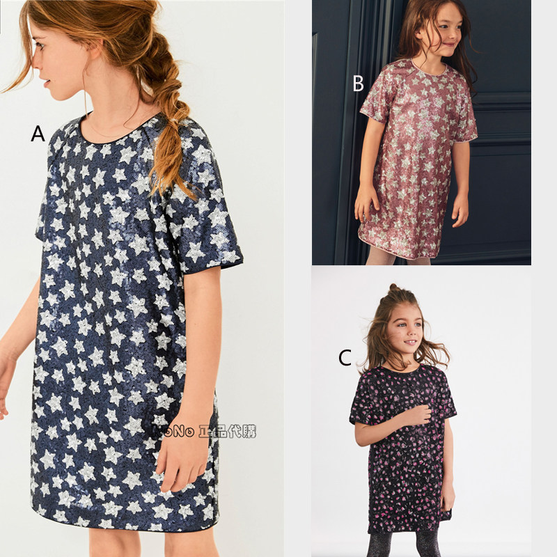 Next, синее платье, семейный стиль, с блестками