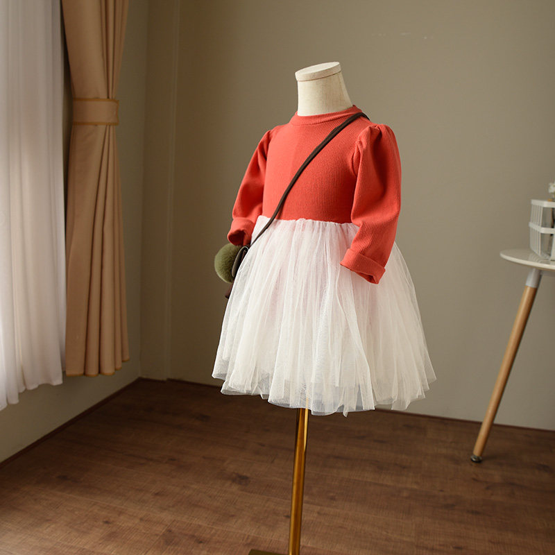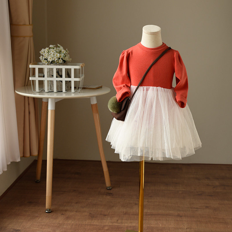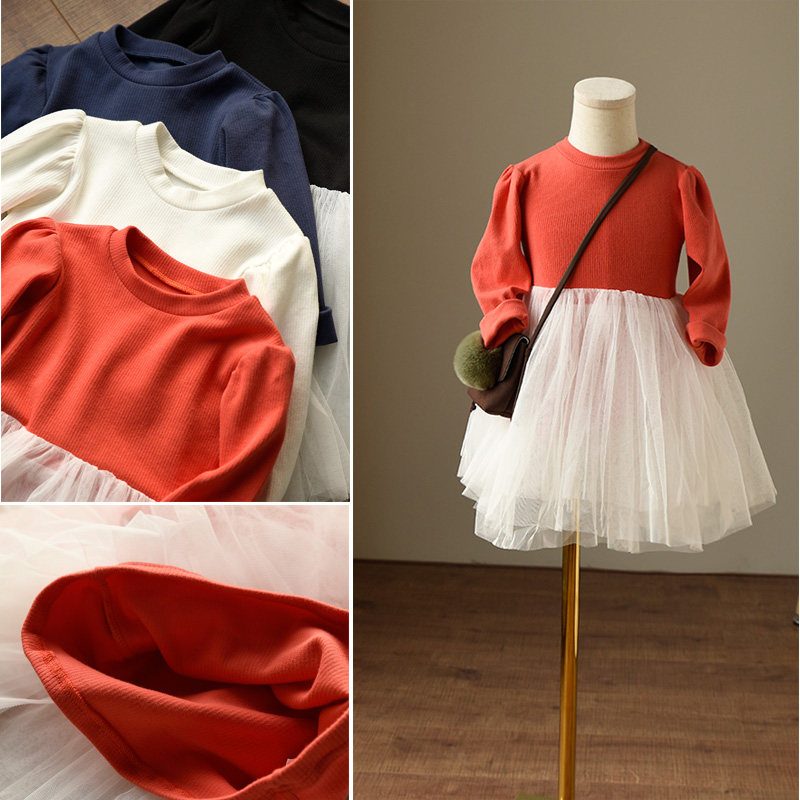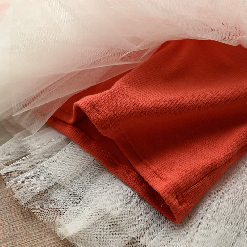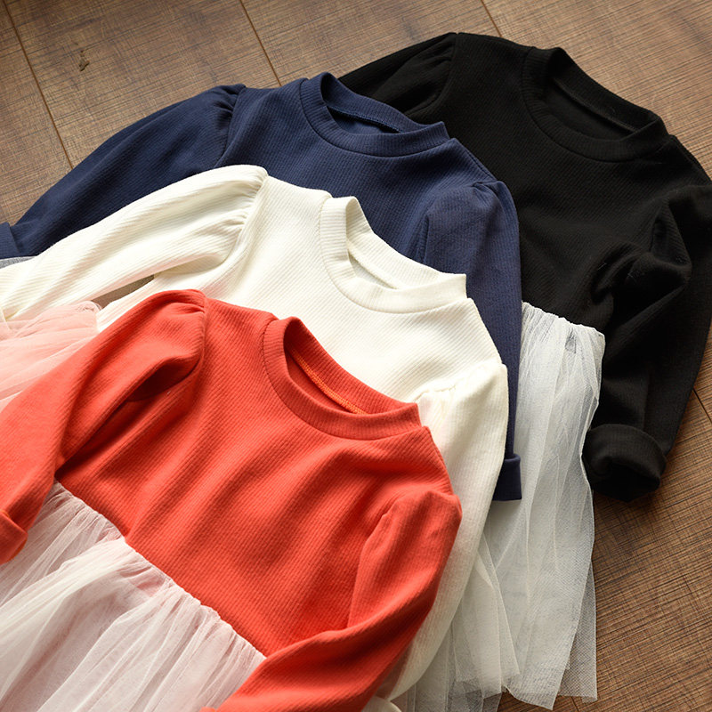 Детский хлопковый лонгслив, осенняя юбка, рукава фонарики