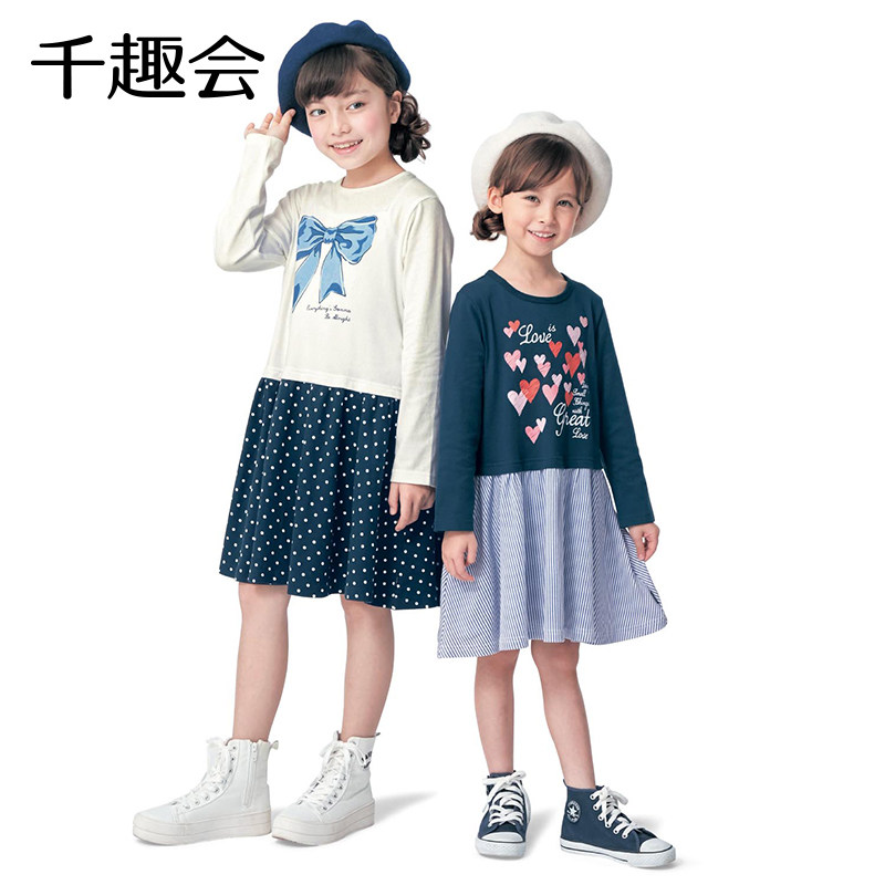 Японская осенняя длинная юбка, комплект, хлопковый лонгслив, детское платье