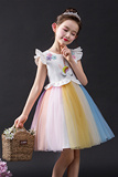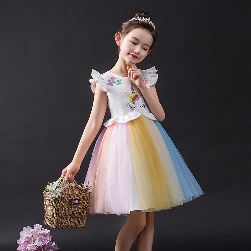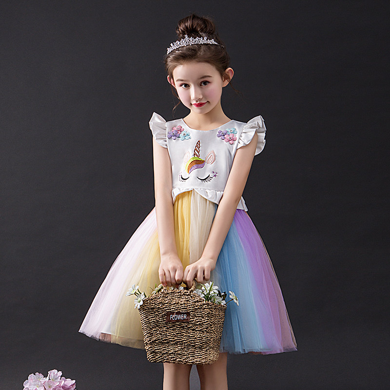 Платье, наряд маленькой принцессы, юбка, детская радужная летняя летняя одежда для девочек, в западном стиле