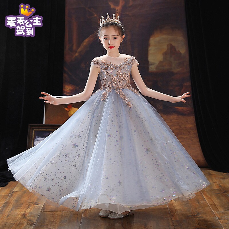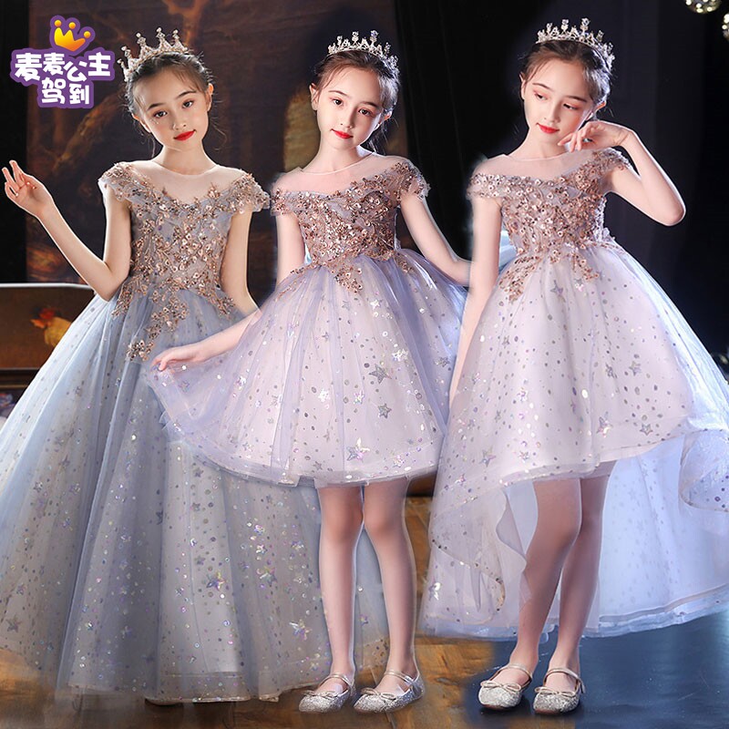 Элитное блестящее платье, костюм, пианино, длинная юбка, юбка на девочку, наряд маленькой принцессы