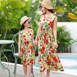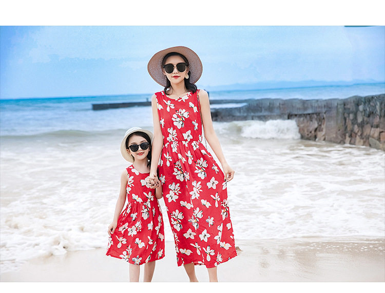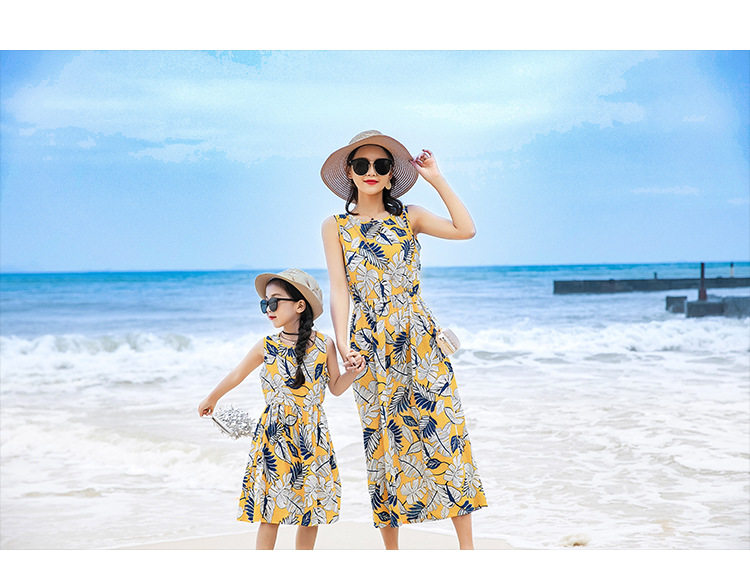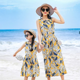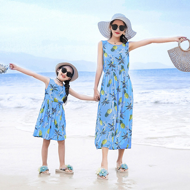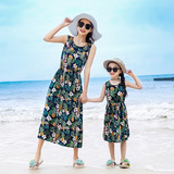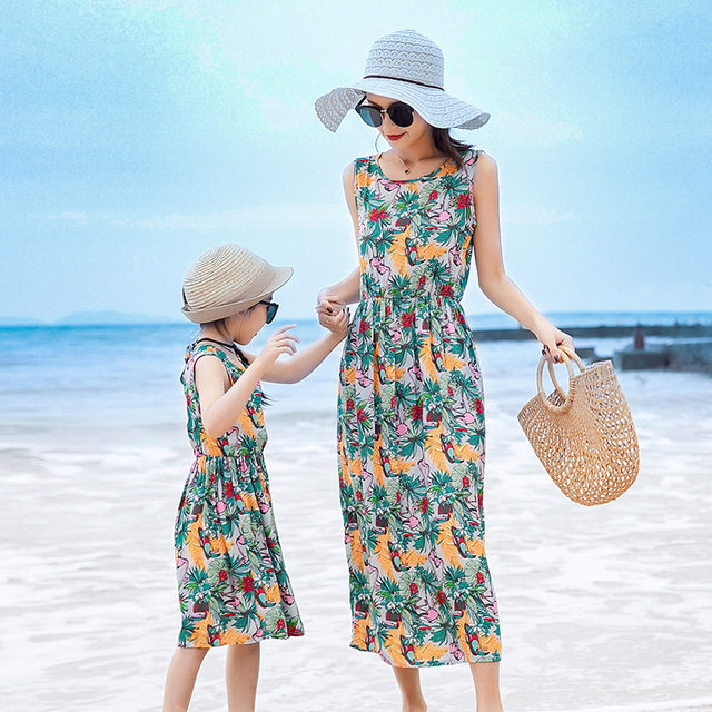 Длинная юбка, платье с рукавами без рукавов, длинное пляжное платье, семейный стиль, средней длины