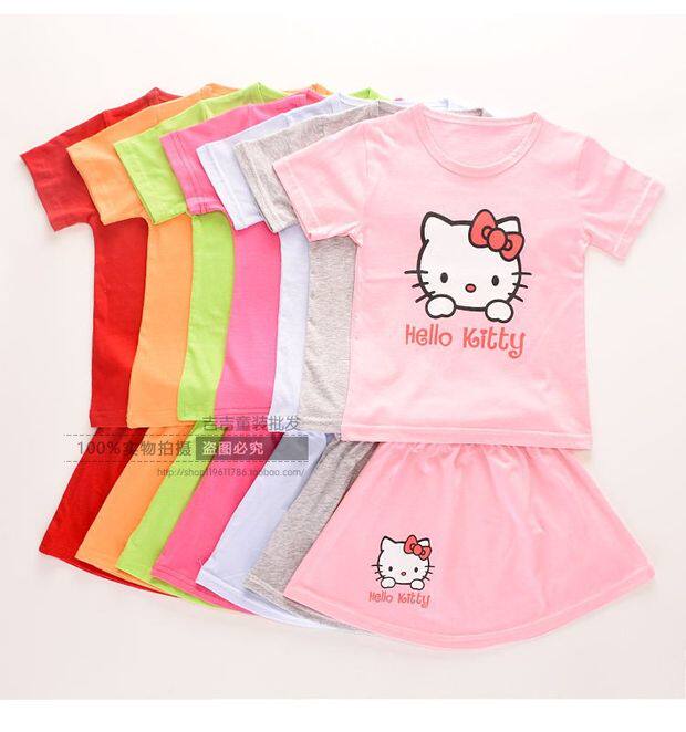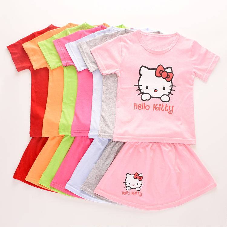 Летние детские нарукавники, комплект, хлопковая юбка, мультяшная мини-юбка, наряд маленькой принцессы, детская одежда