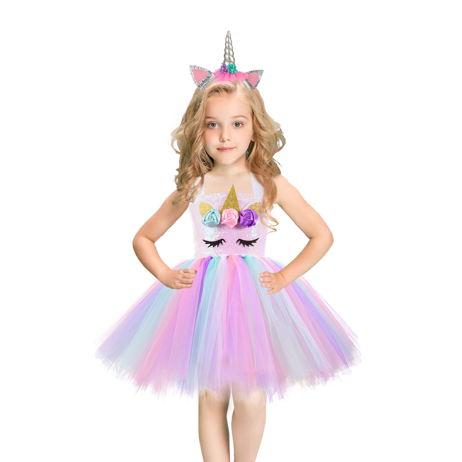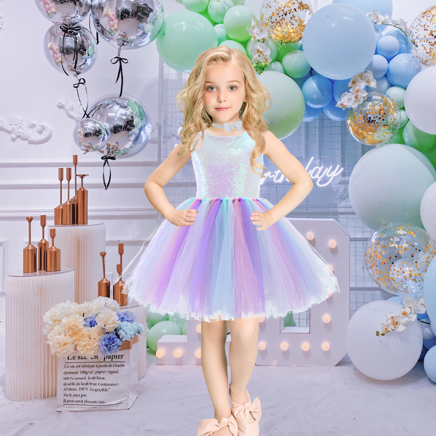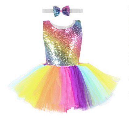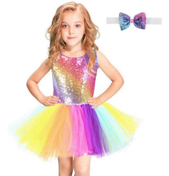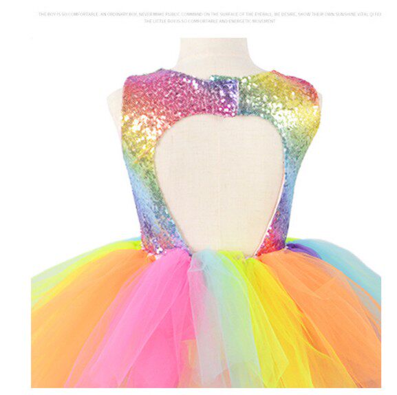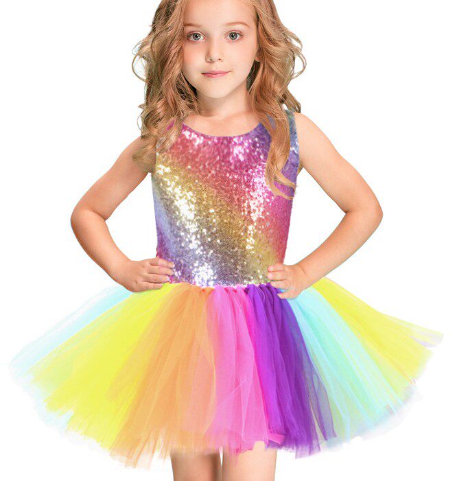 Радужный наряд маленькой принцессы, вечернее платье, блестки для ногтей, детский костюм, в западном стиле