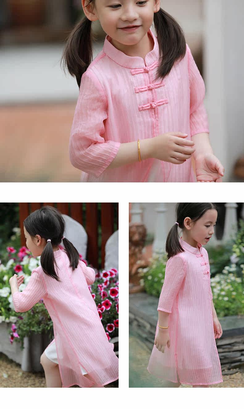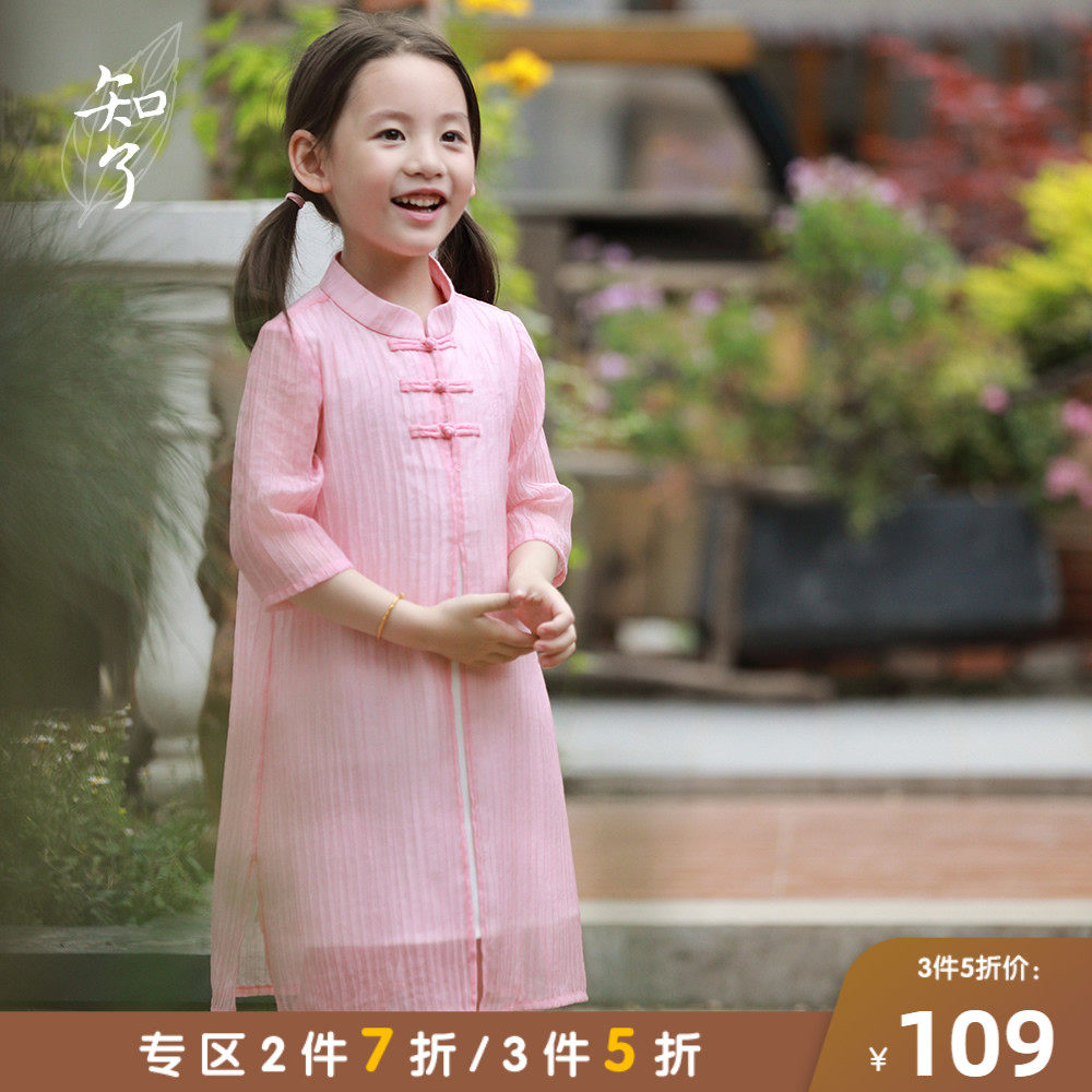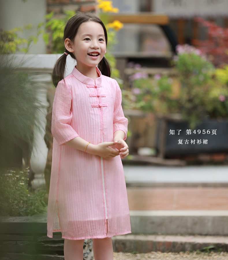 知了 Детская летняя ретро рубашка, платье с рукавами, летняя одежда, детская одежда, китайский стиль