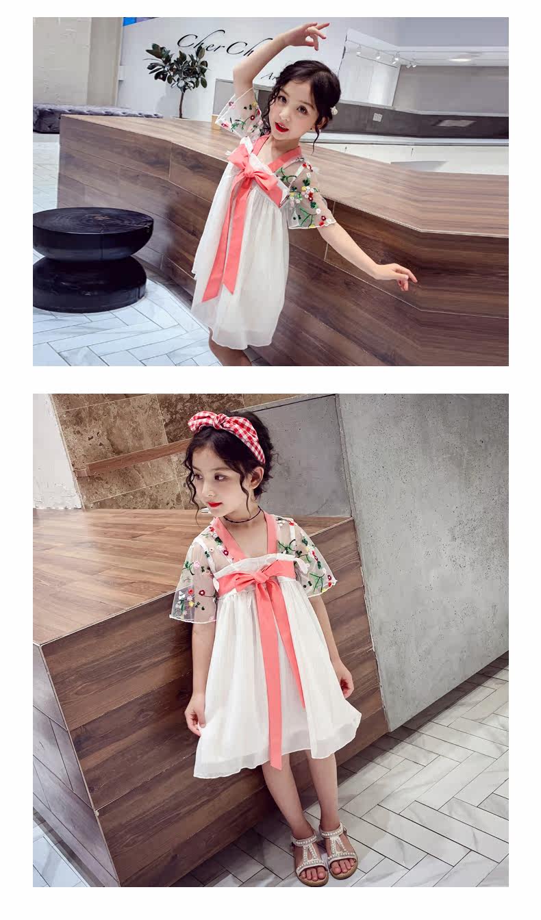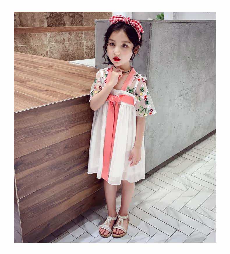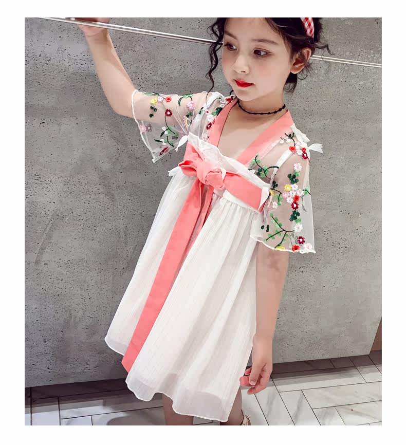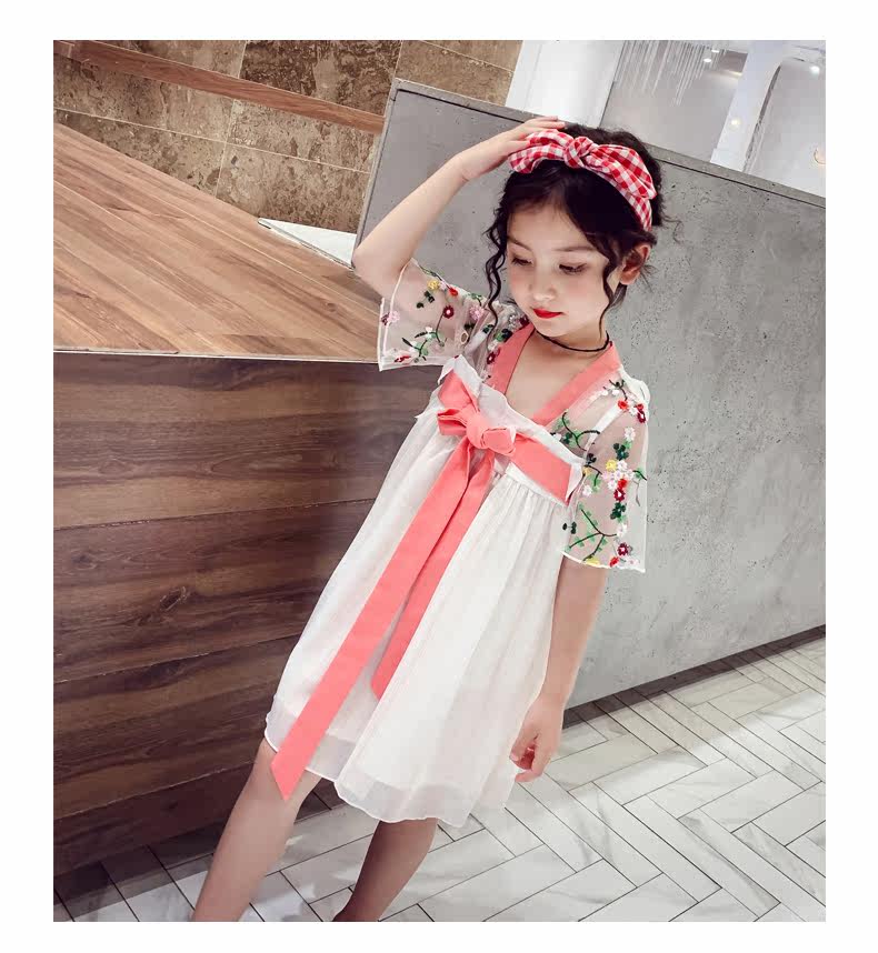 Летняя одежда, ханьфу, платье, китайская шифоновая вышивка, наряд маленькой принцессы, 2020, новая коллекция, с вышивкой, китайский стиль, подходит для подростков