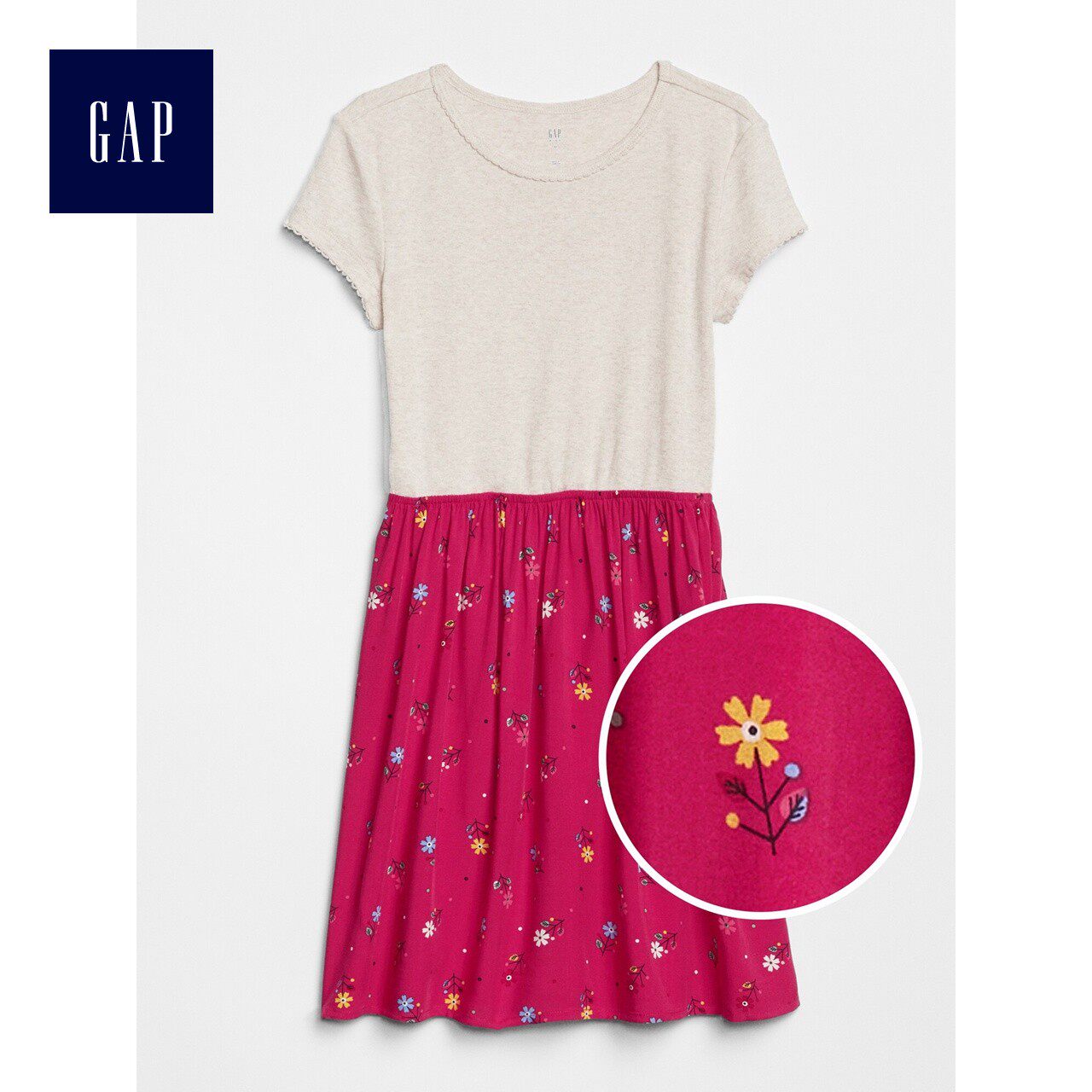 Gap Детское платье с коротким рукавом с круглым воротником, в западном стиле, детская одежда