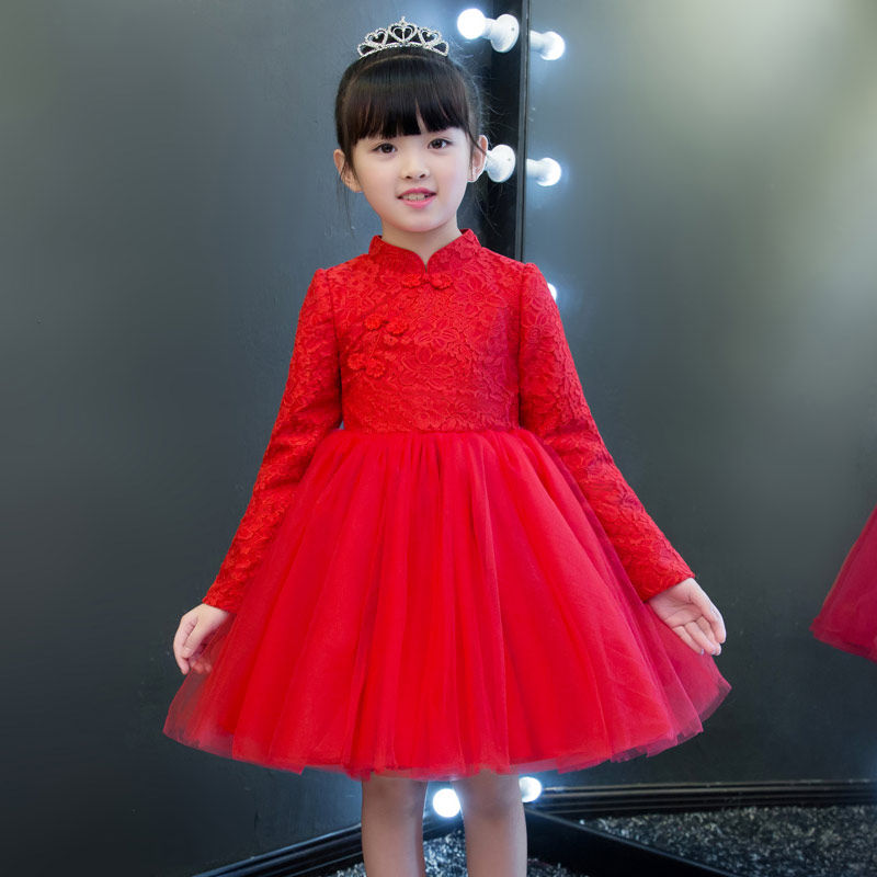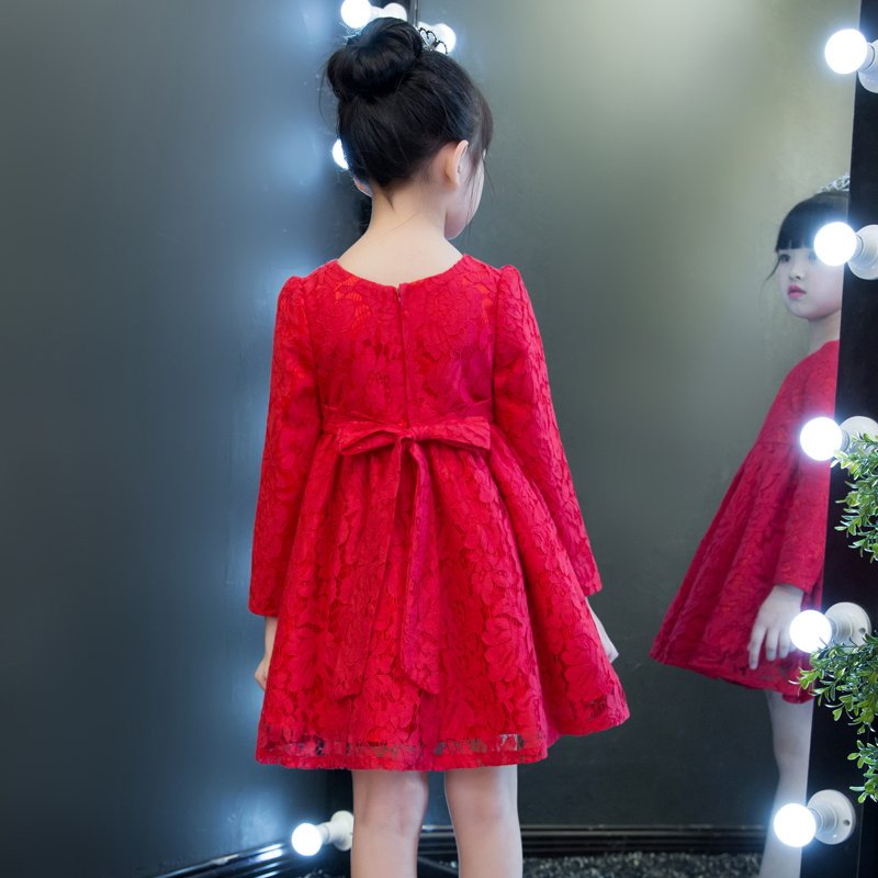 Демисезонное платье, весенний флисовый наряд маленькой принцессы, красная юбка, 2023, в западном стиле