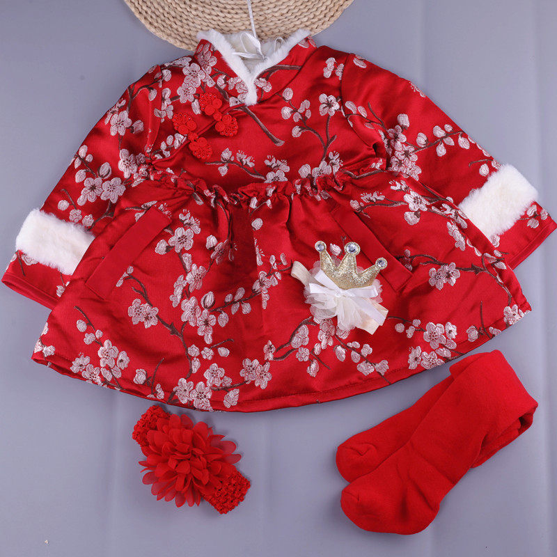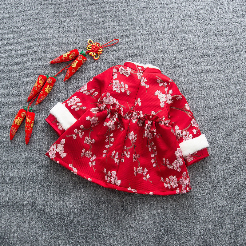 Утепленный наряд маленькой принцессы, зимняя юбка на девочку, этническое ципао для раннего возраста, этнический стиль