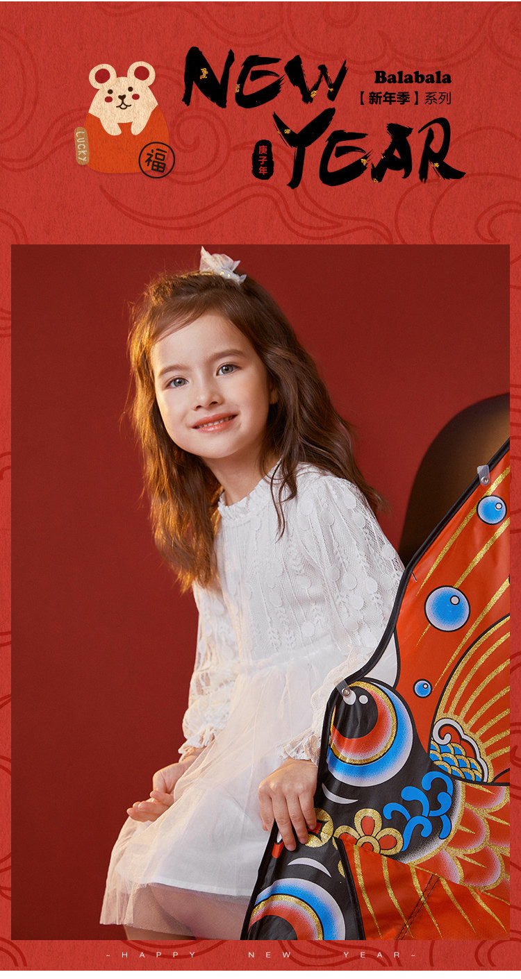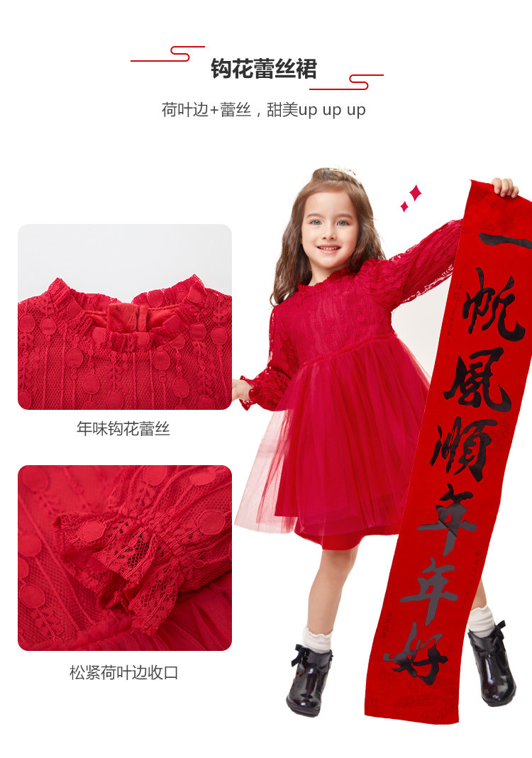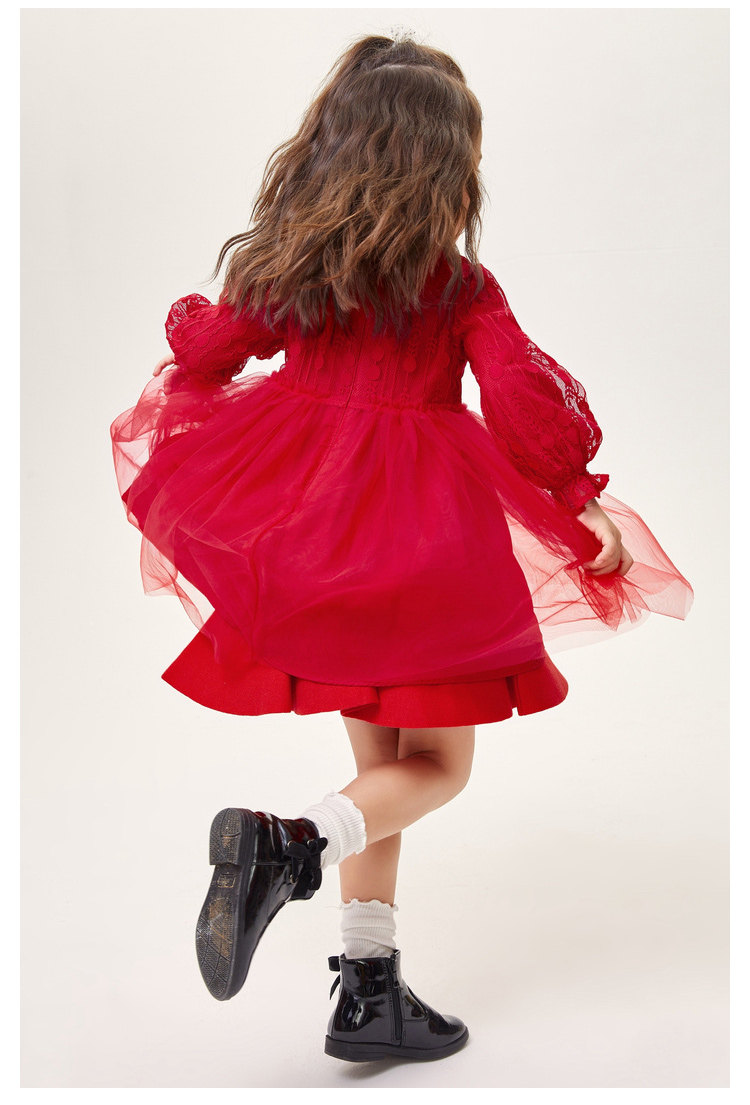 巴拉巴拉 Детское платье, красная юбка, кружевной наряд маленькой принцессы, детская одежда