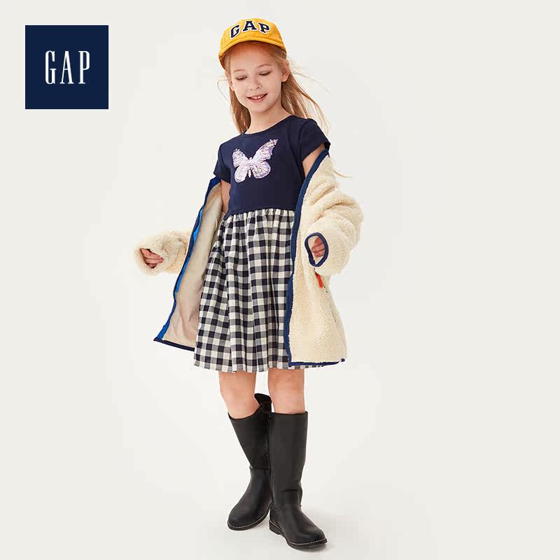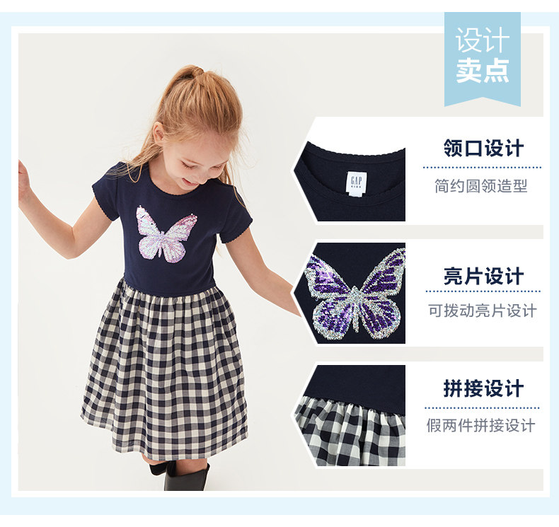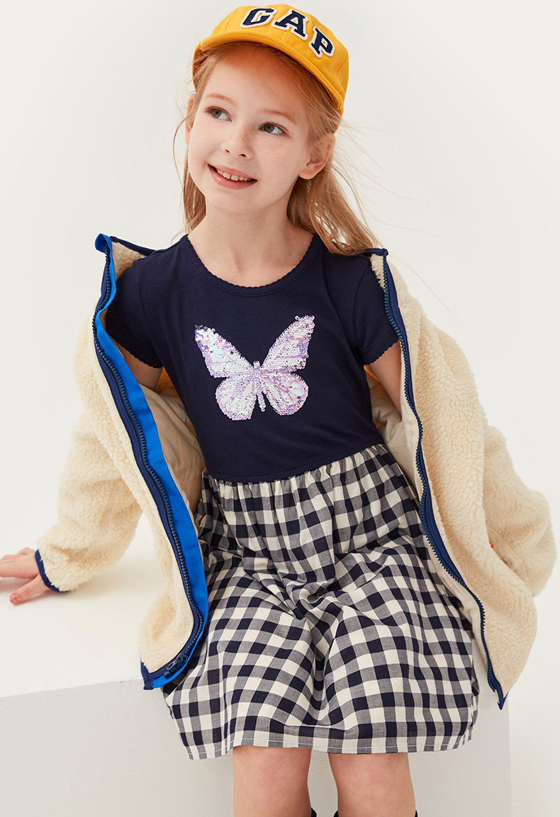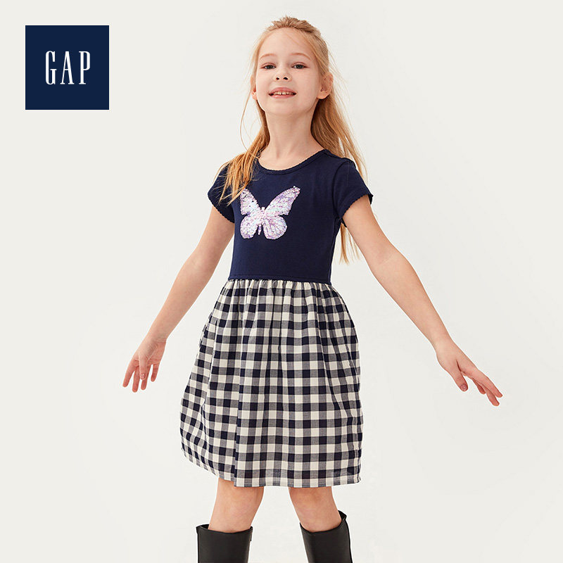 Gap Платье для девочек с круглым вырезом и короткими рукавами, лето 540324, новинка 2020, юбка с принтом бабочки и пайетками