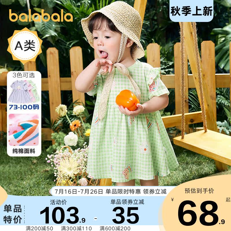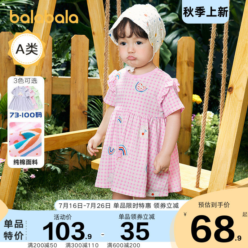 巴拉巴拉 Детское платье, хлопковый наряд маленькой принцессы, юбка, летняя одежда, детская одежда