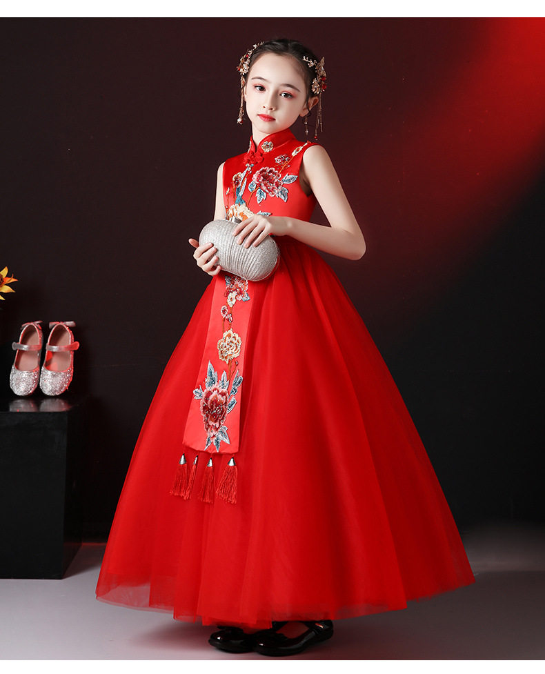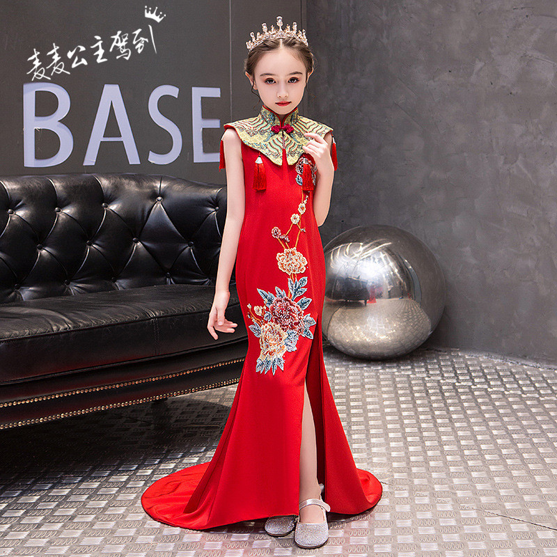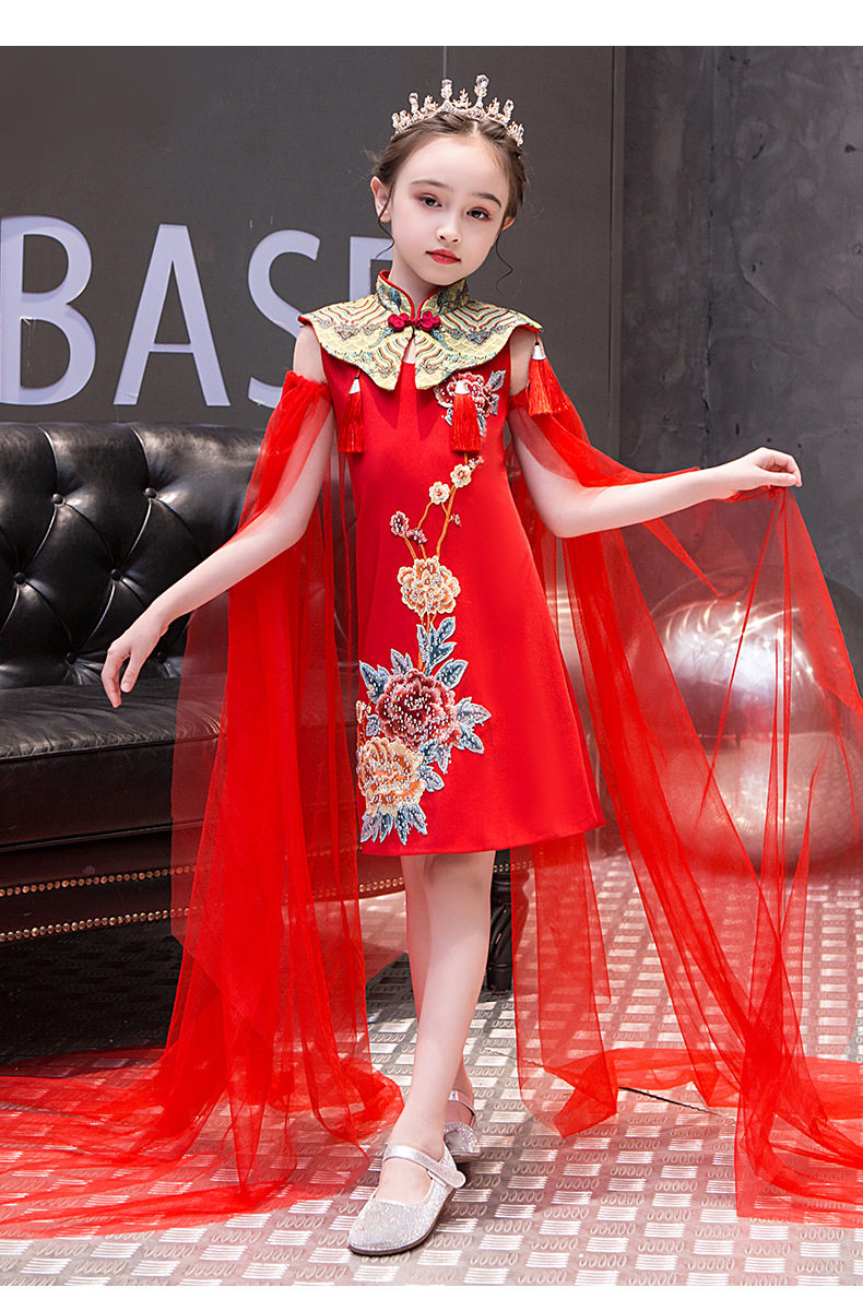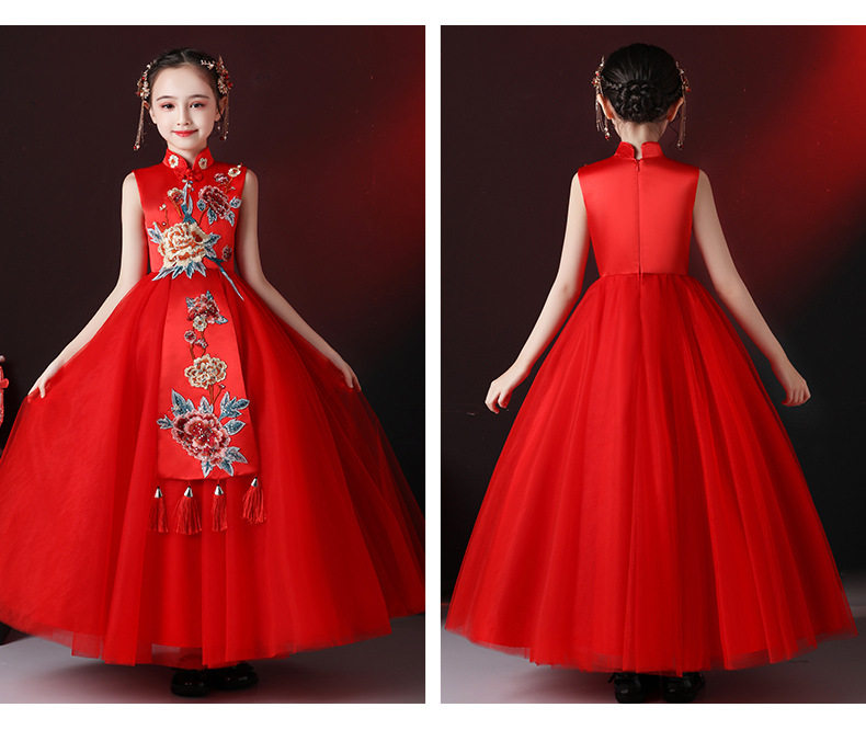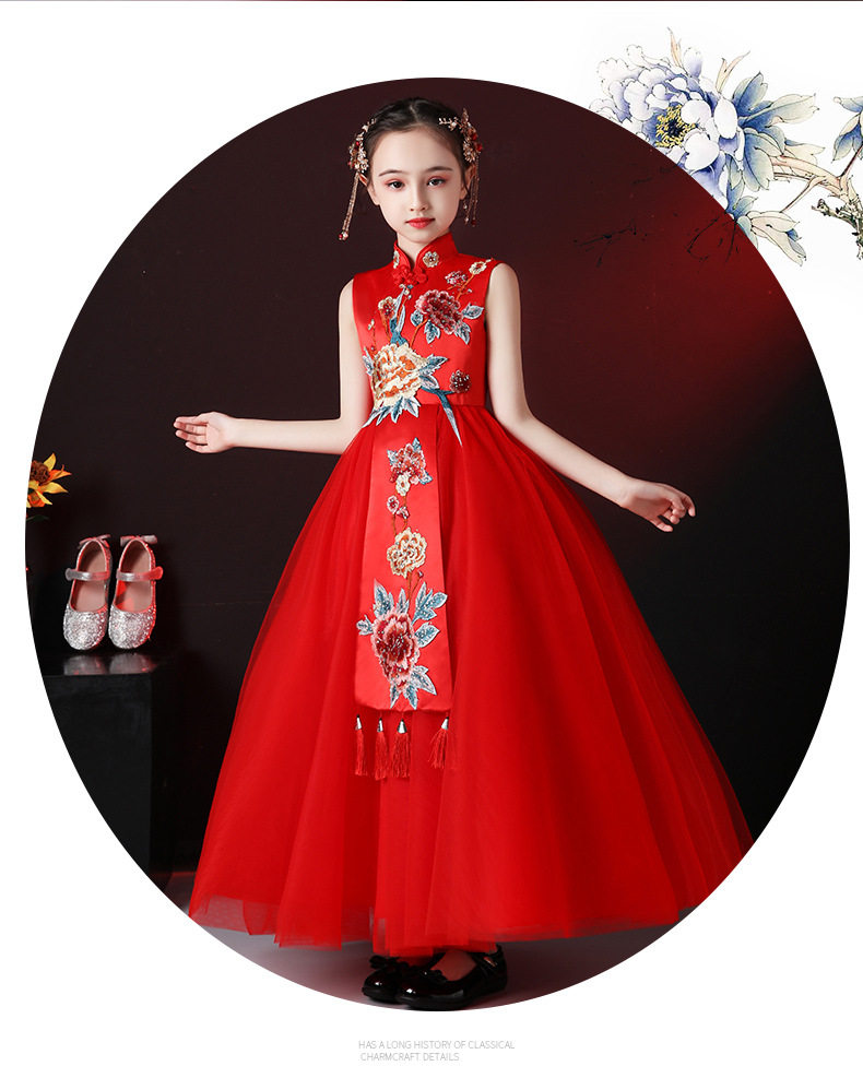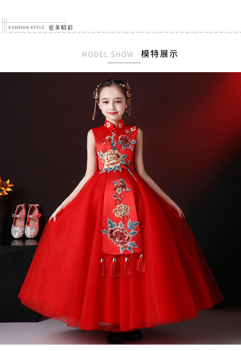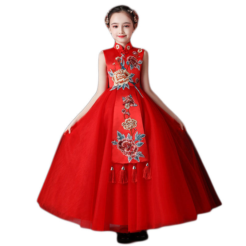 Красная длинная юбка, платье, костюм, ципао, с вышивкой, китайский стиль, для подиума