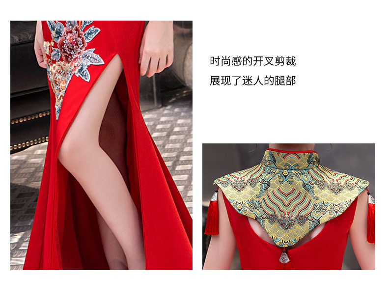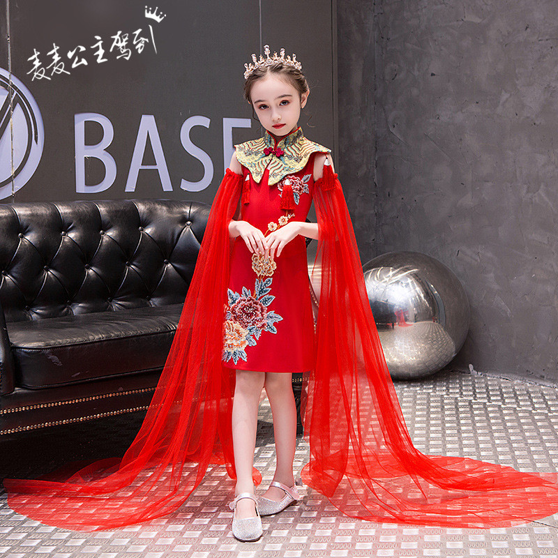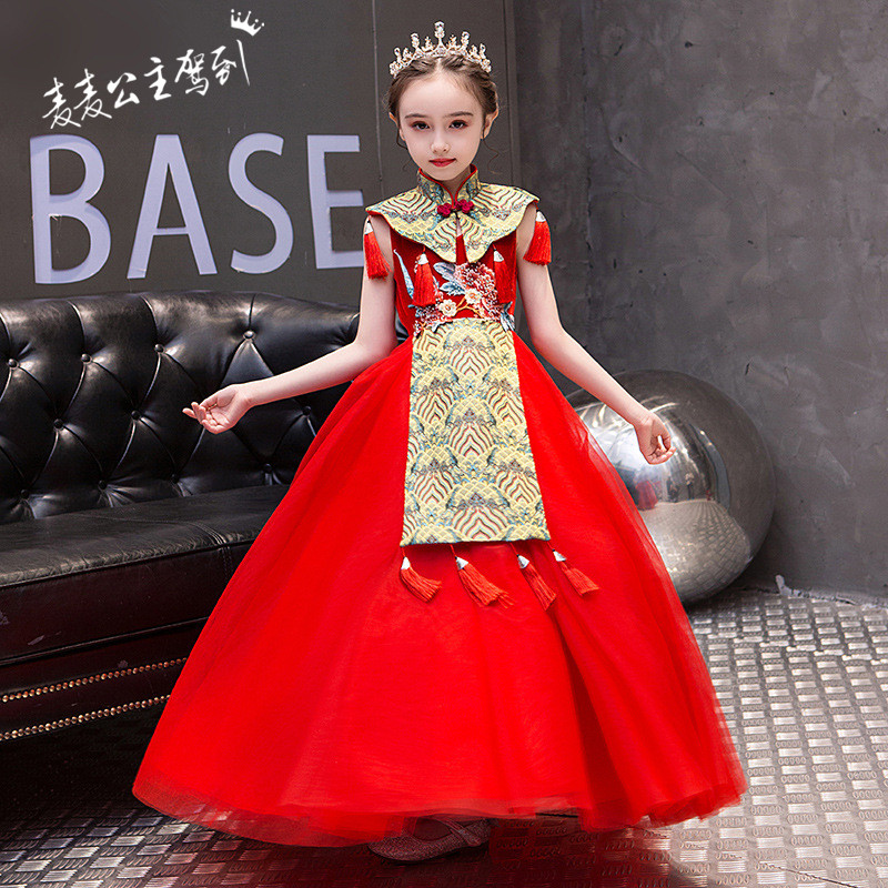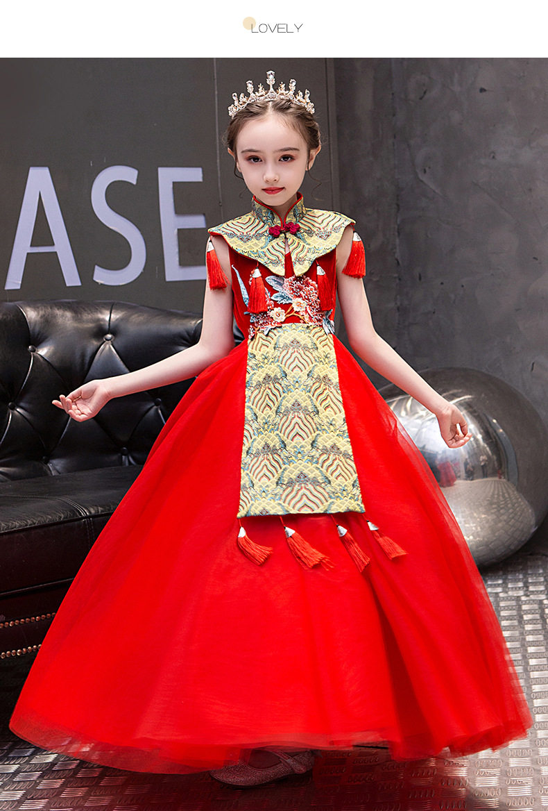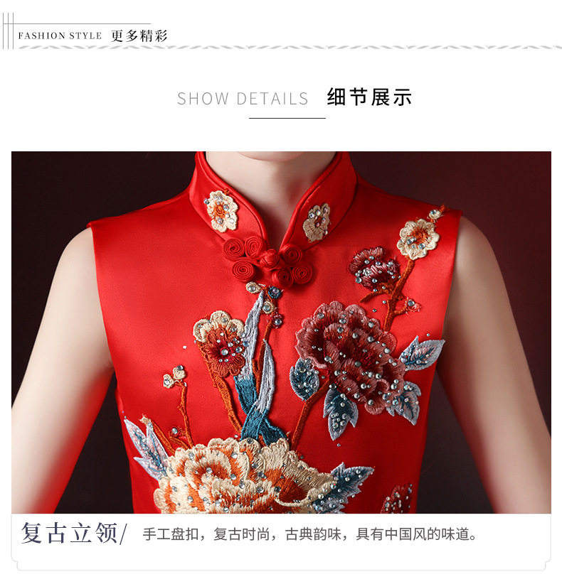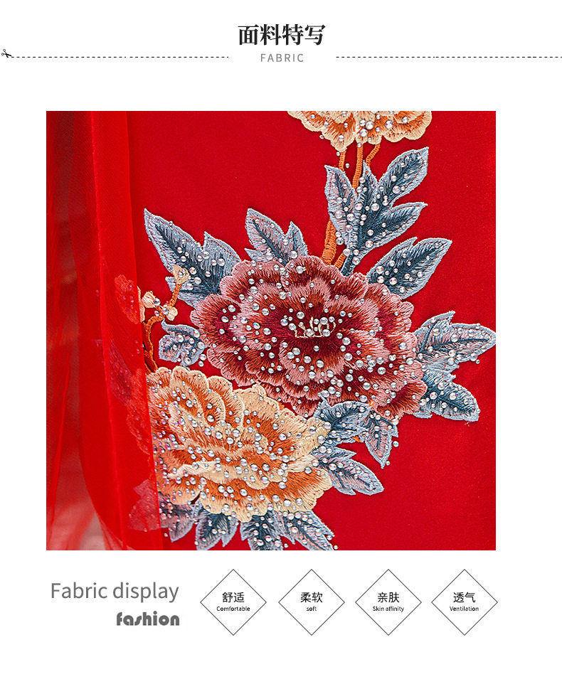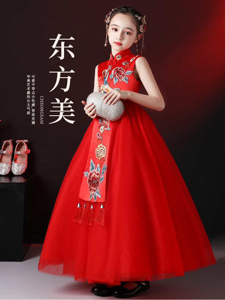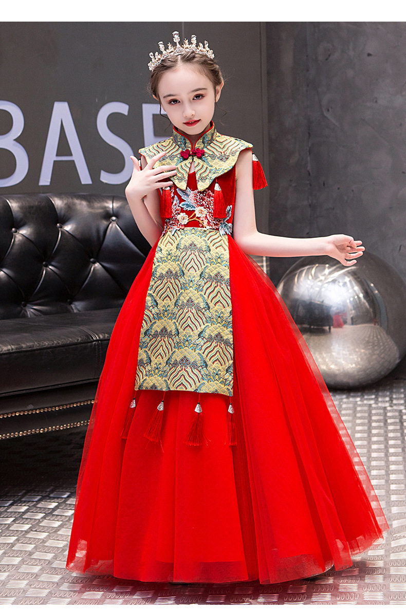 Красная длинная юбка, платье, костюм, ципао, с вышивкой, китайский стиль, для подиума