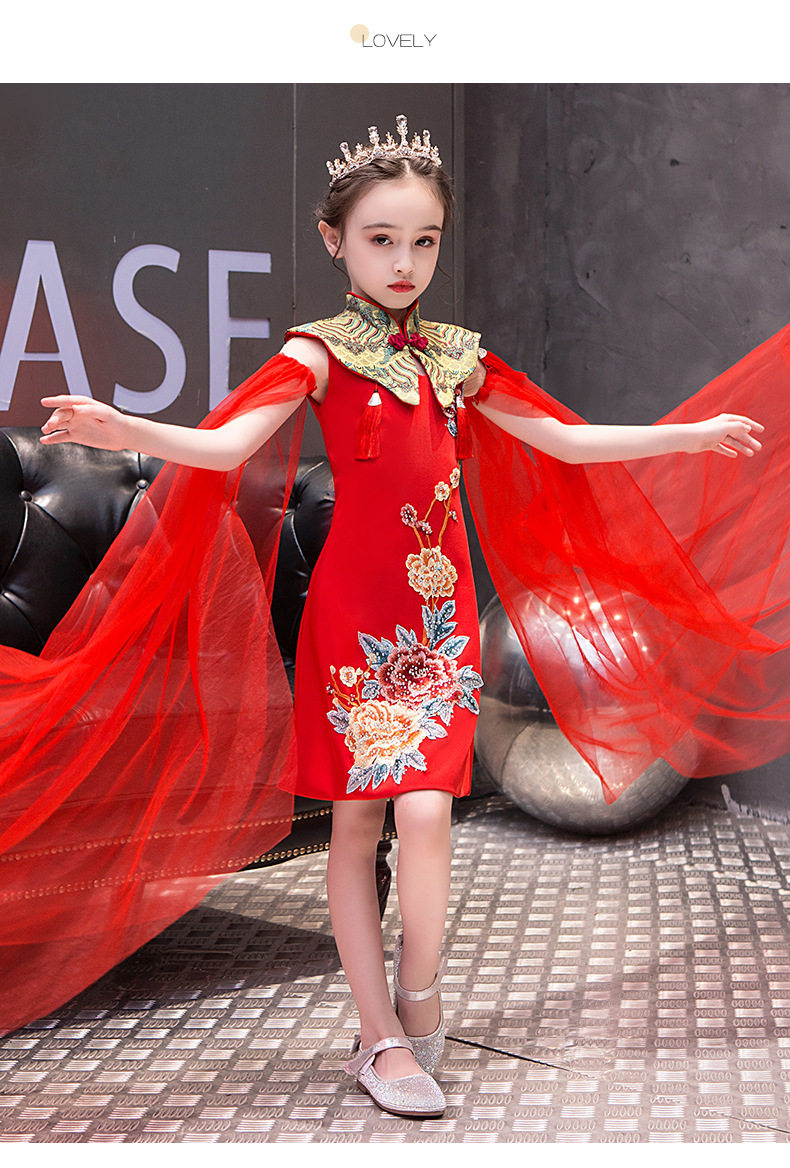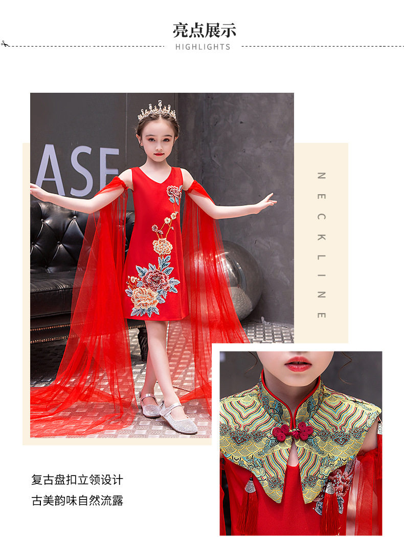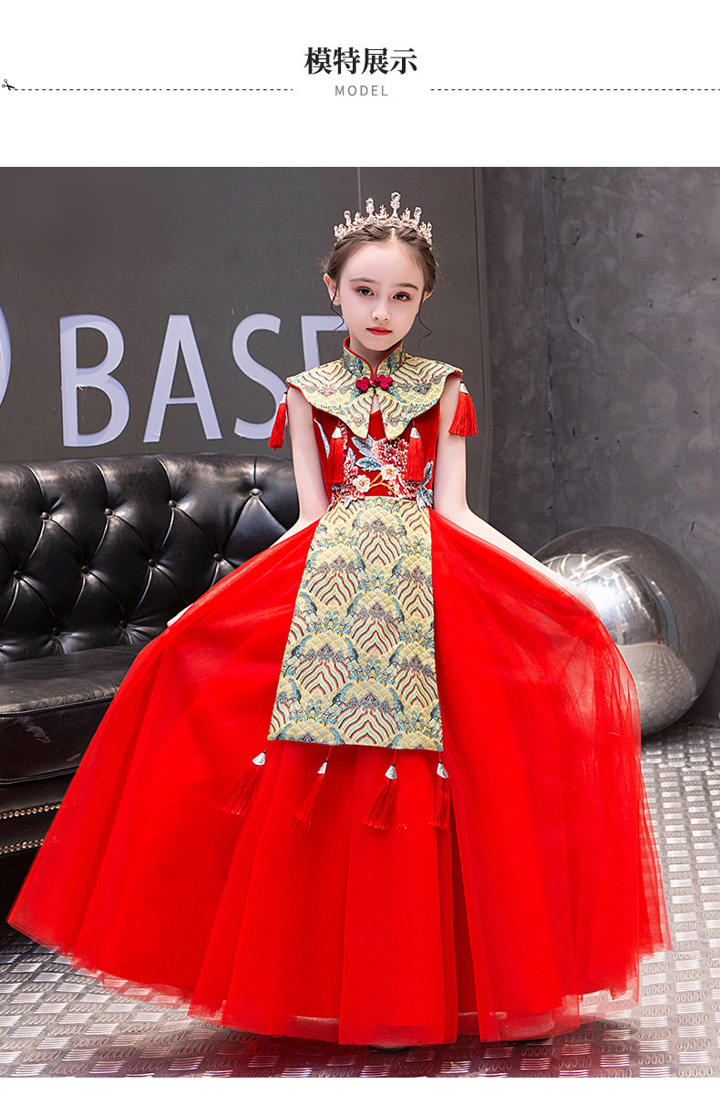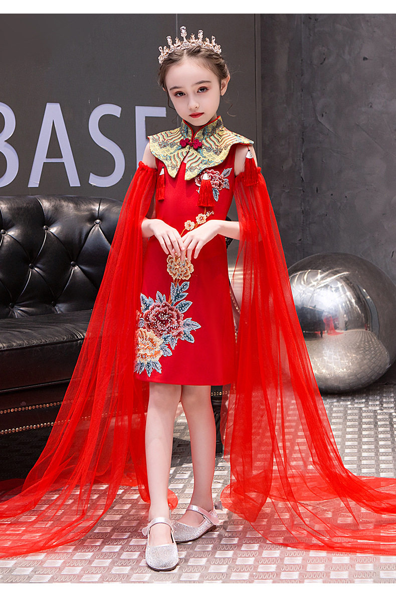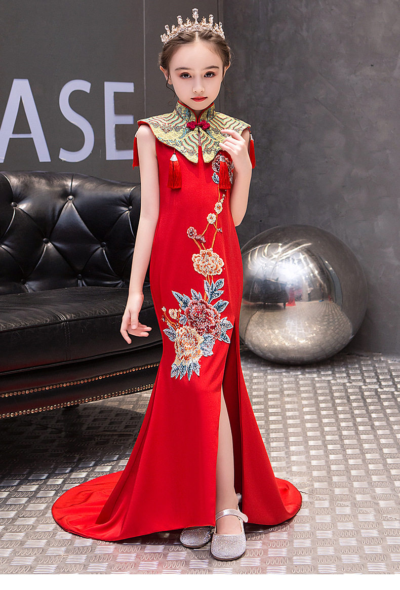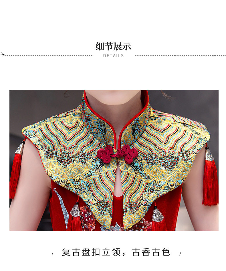 Красная длинная юбка, платье, костюм, ципао, с вышивкой, китайский стиль, для подиума