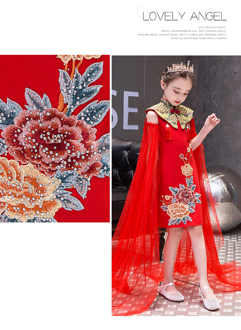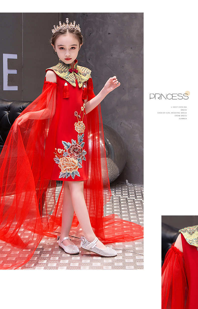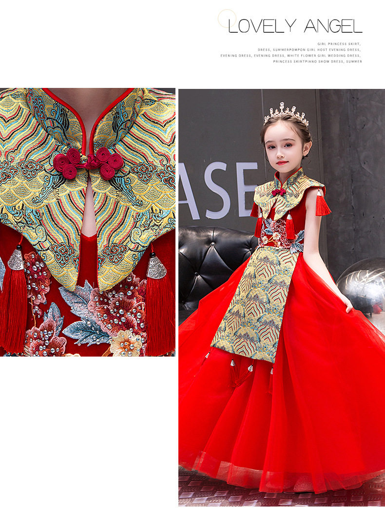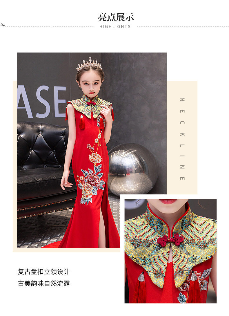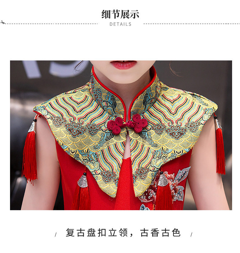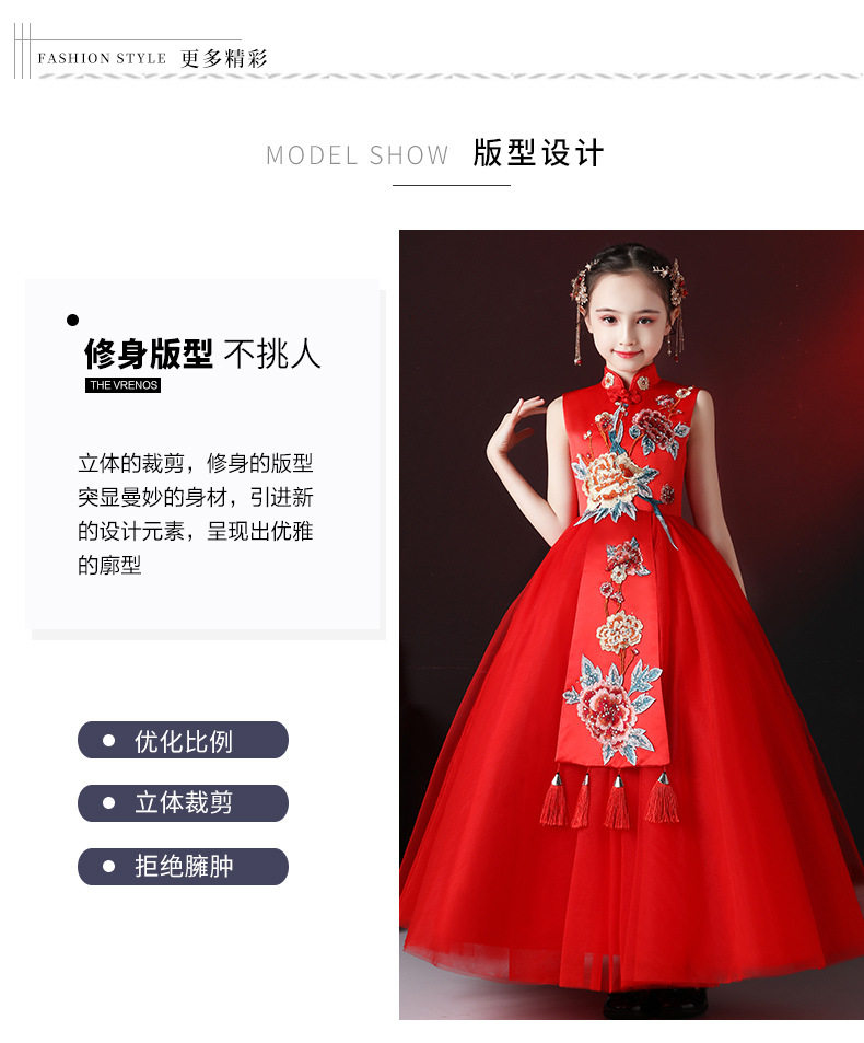 Красная длинная юбка, платье, костюм, ципао, с вышивкой, китайский стиль, для подиума