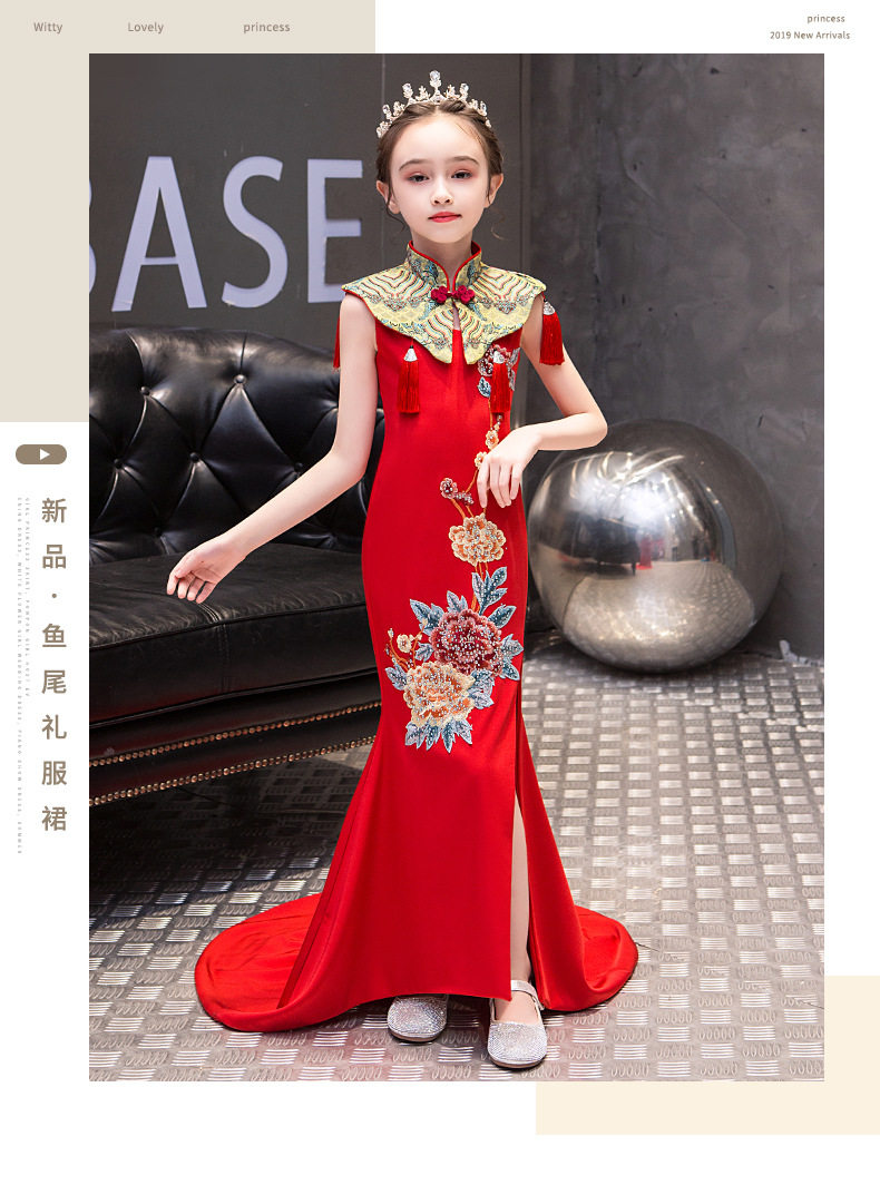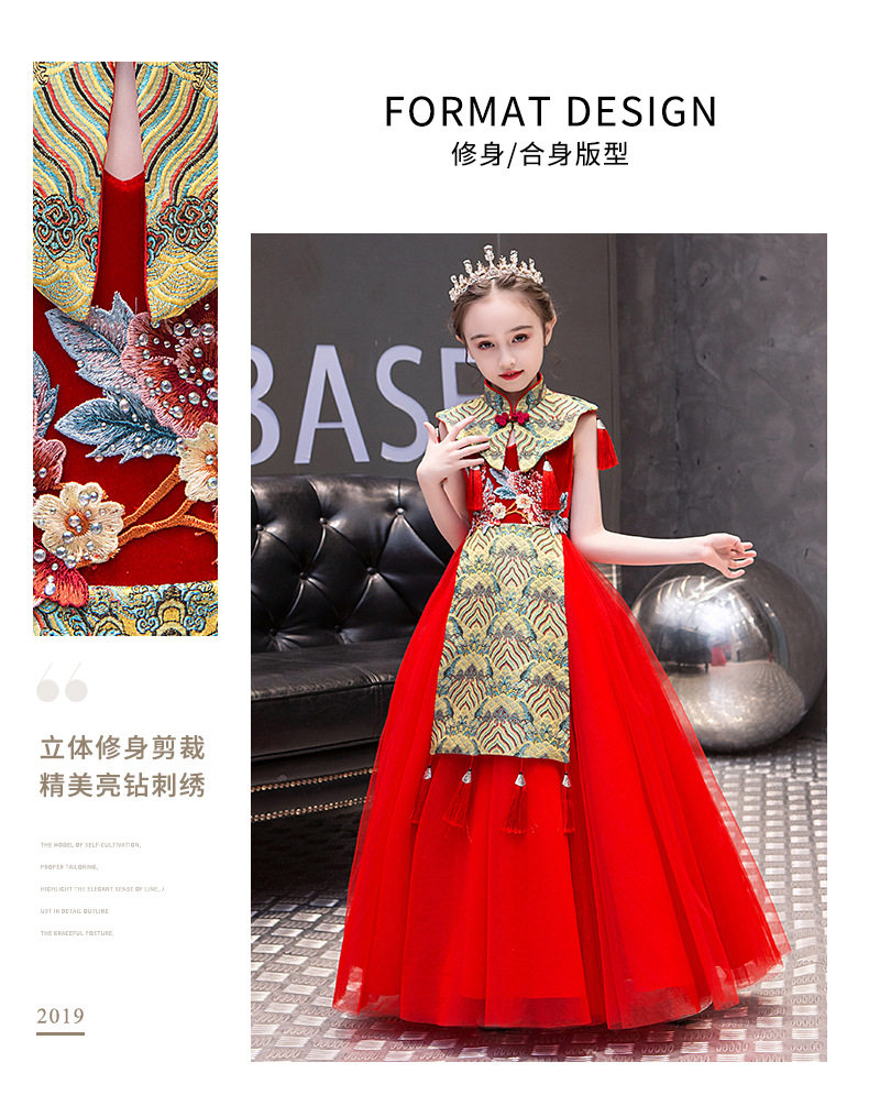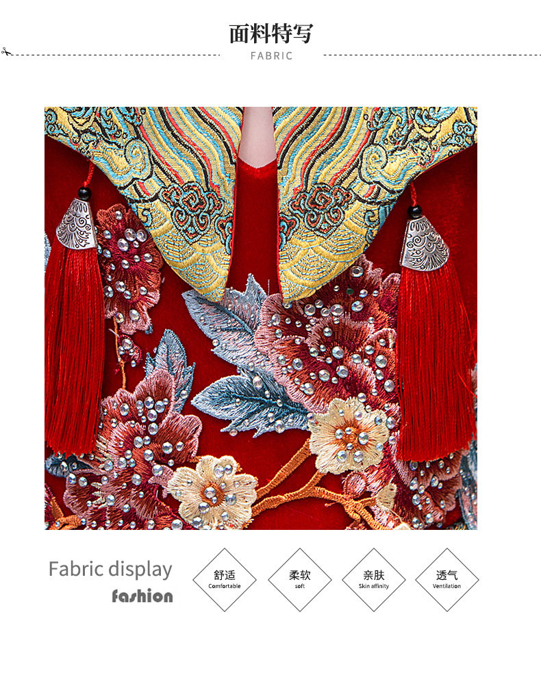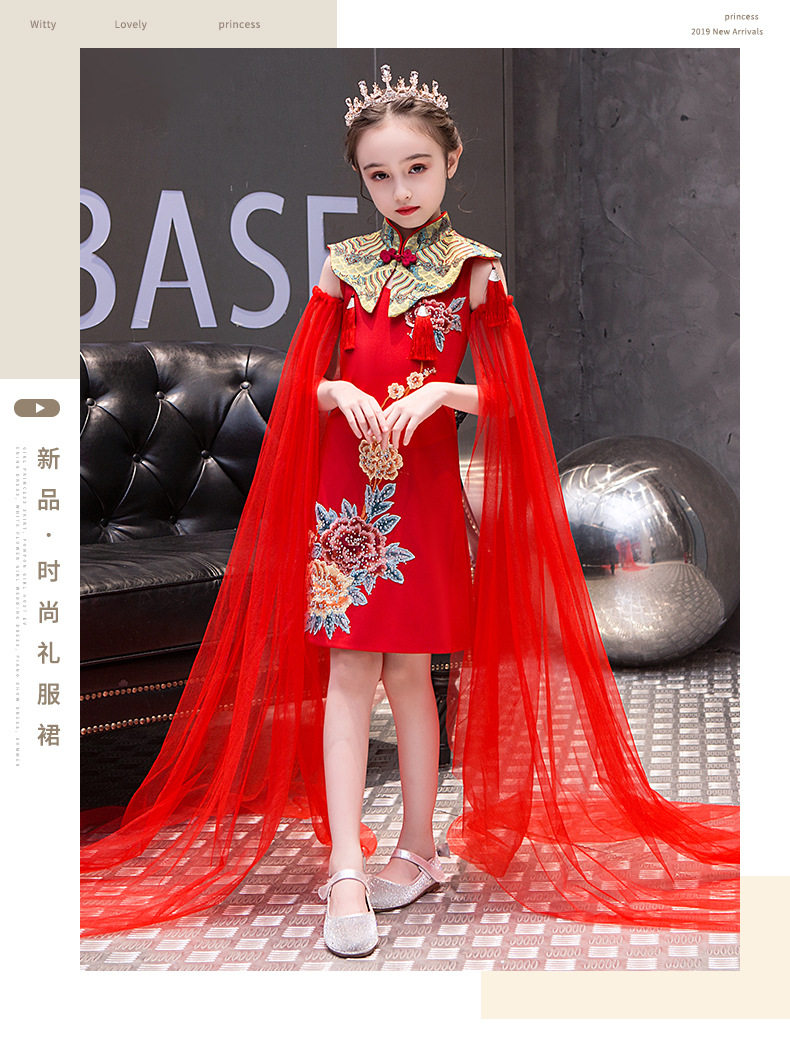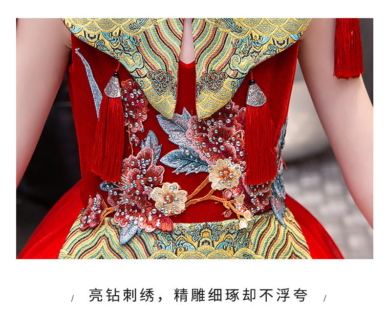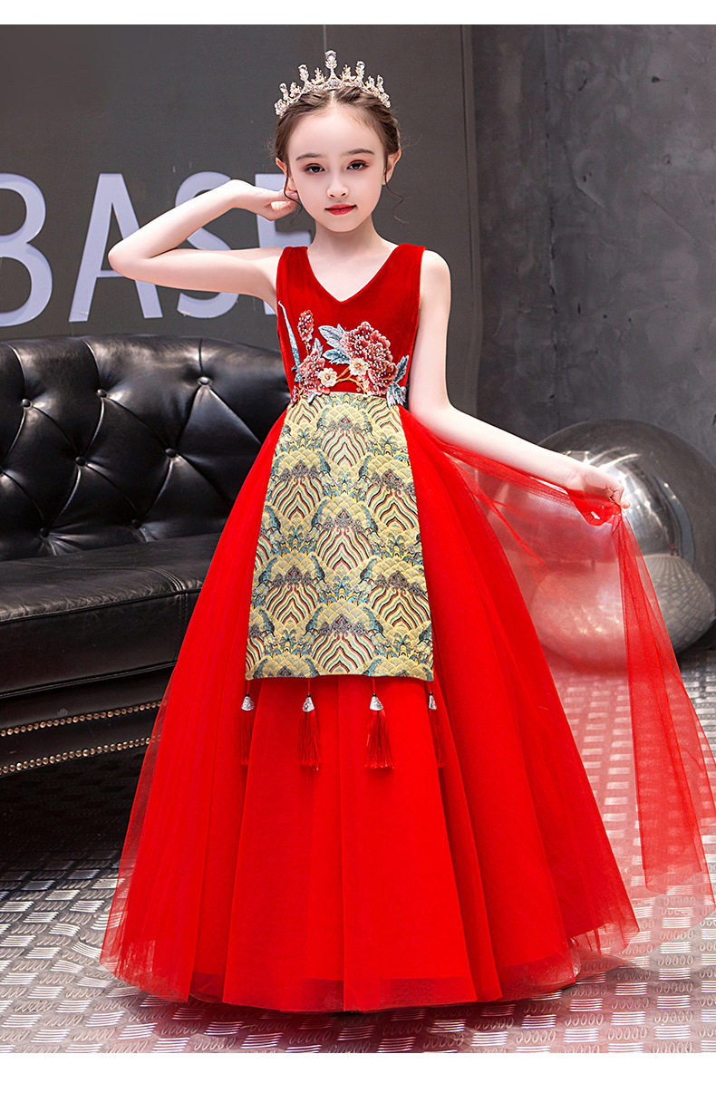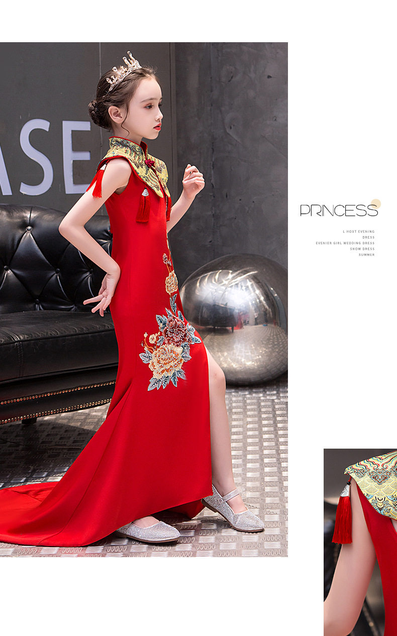 Красная длинная юбка, платье, костюм, ципао, с вышивкой, китайский стиль, для подиума