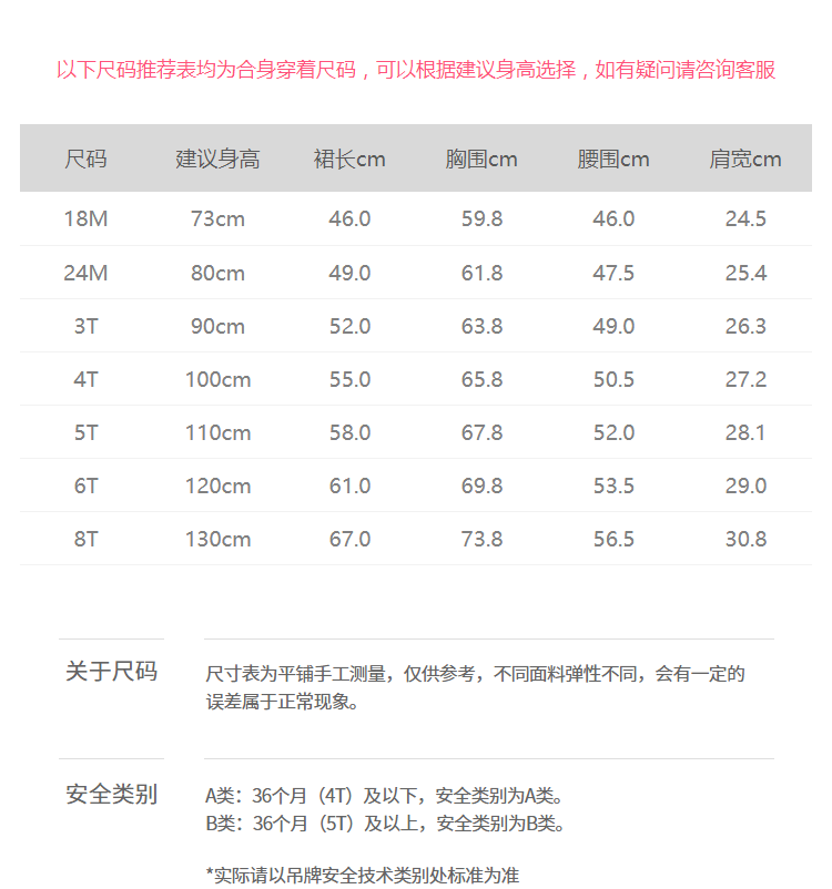 | Справочная высота: | 66cm(66/12M), 73cm(73/18M), 80cm(80/24M), 90cm(90/3T), 100cm(100/4T), 110cm(110/5T), 120cm(120/6T), 130cm(130/8T) |