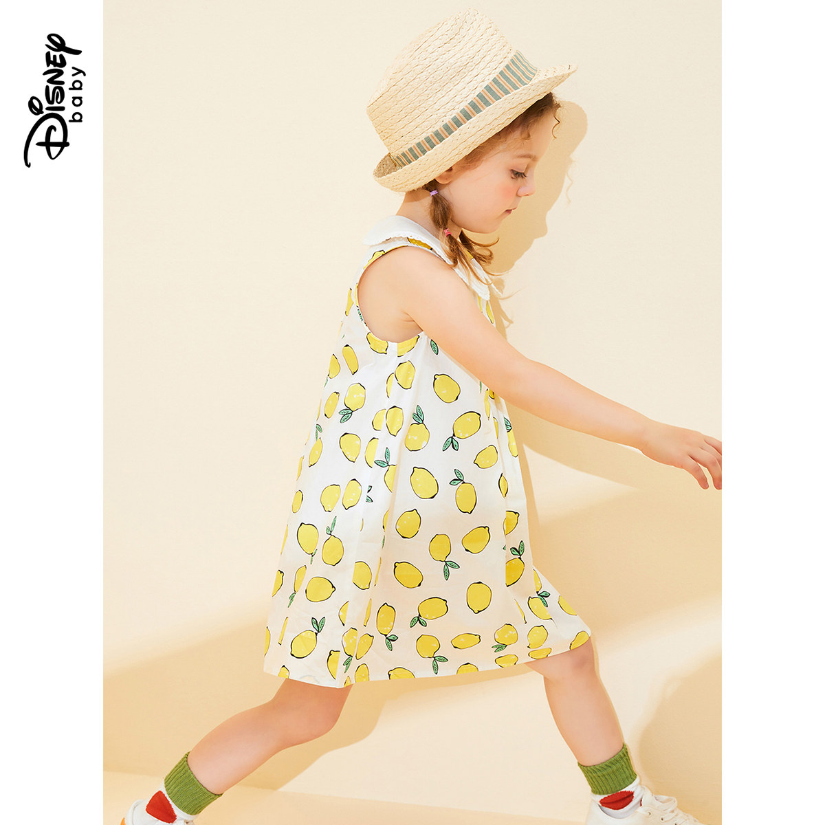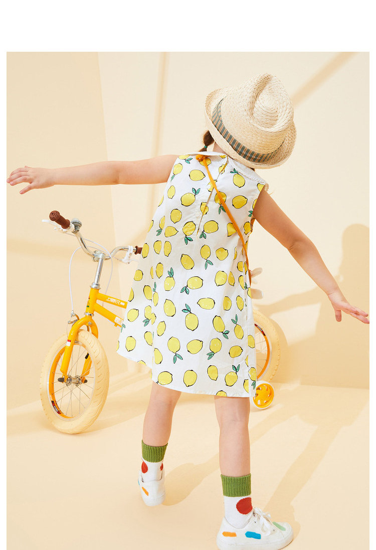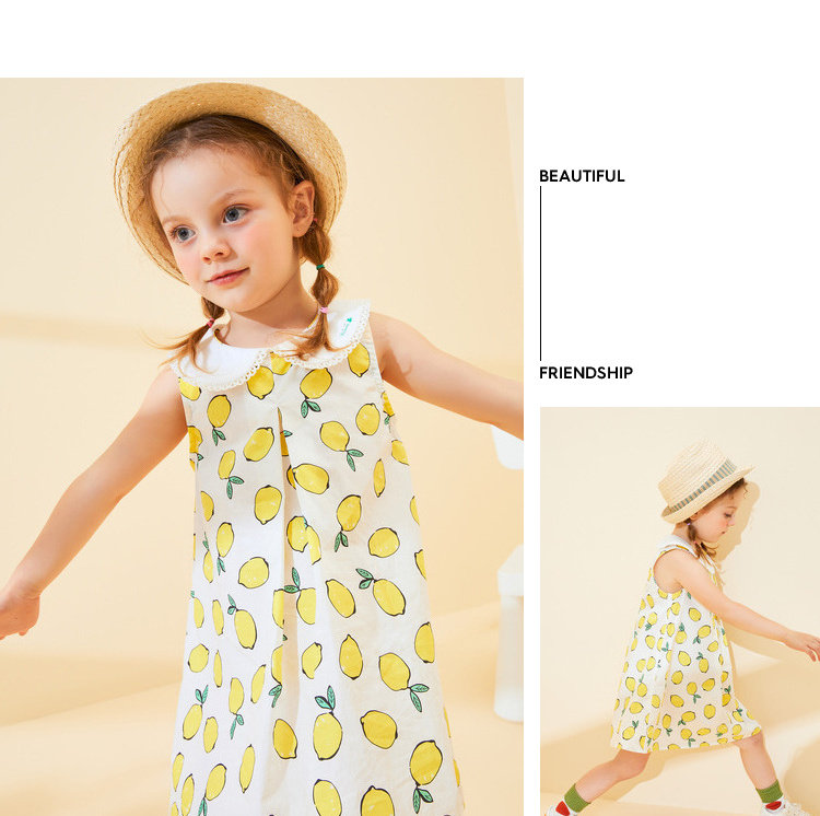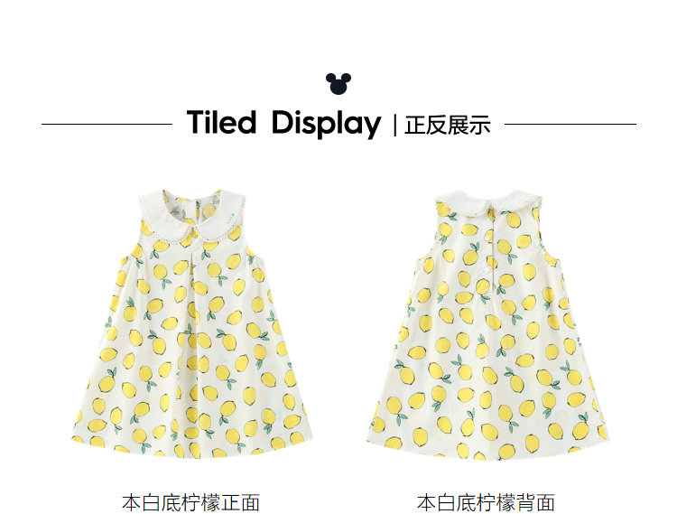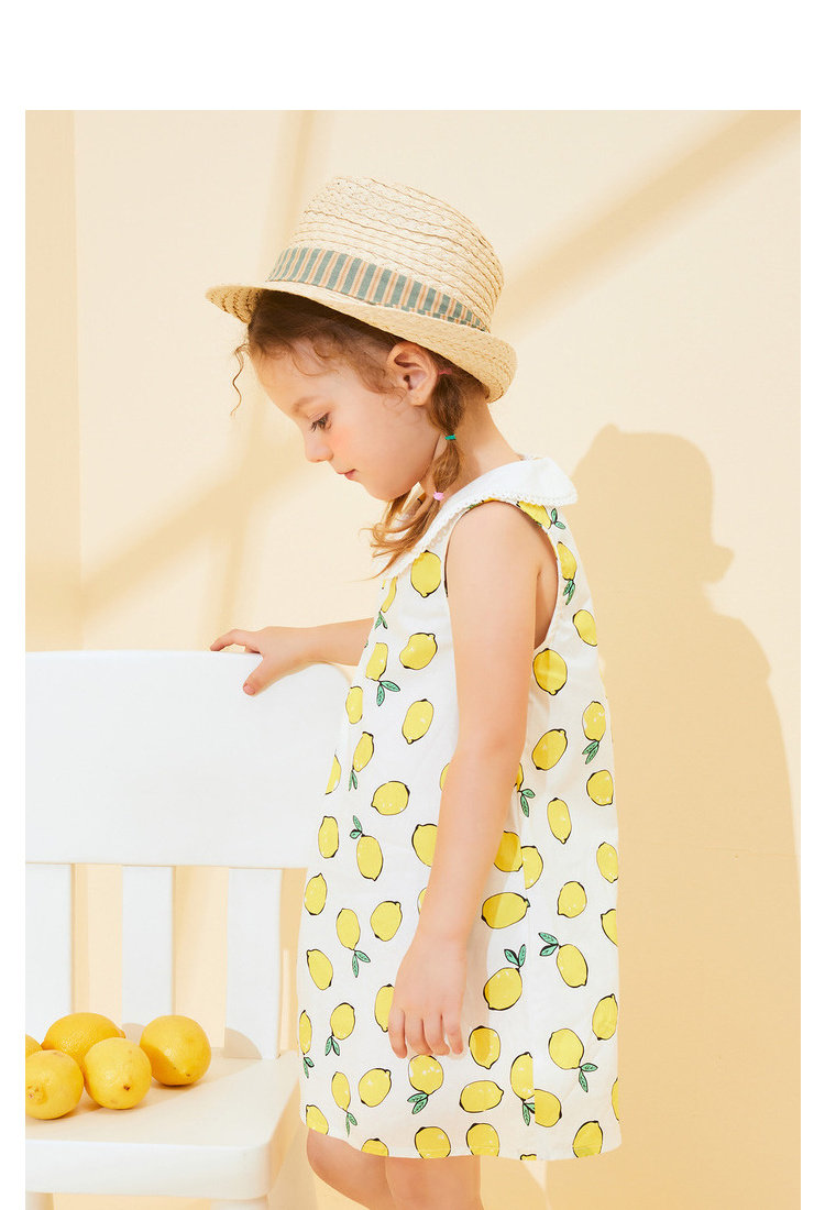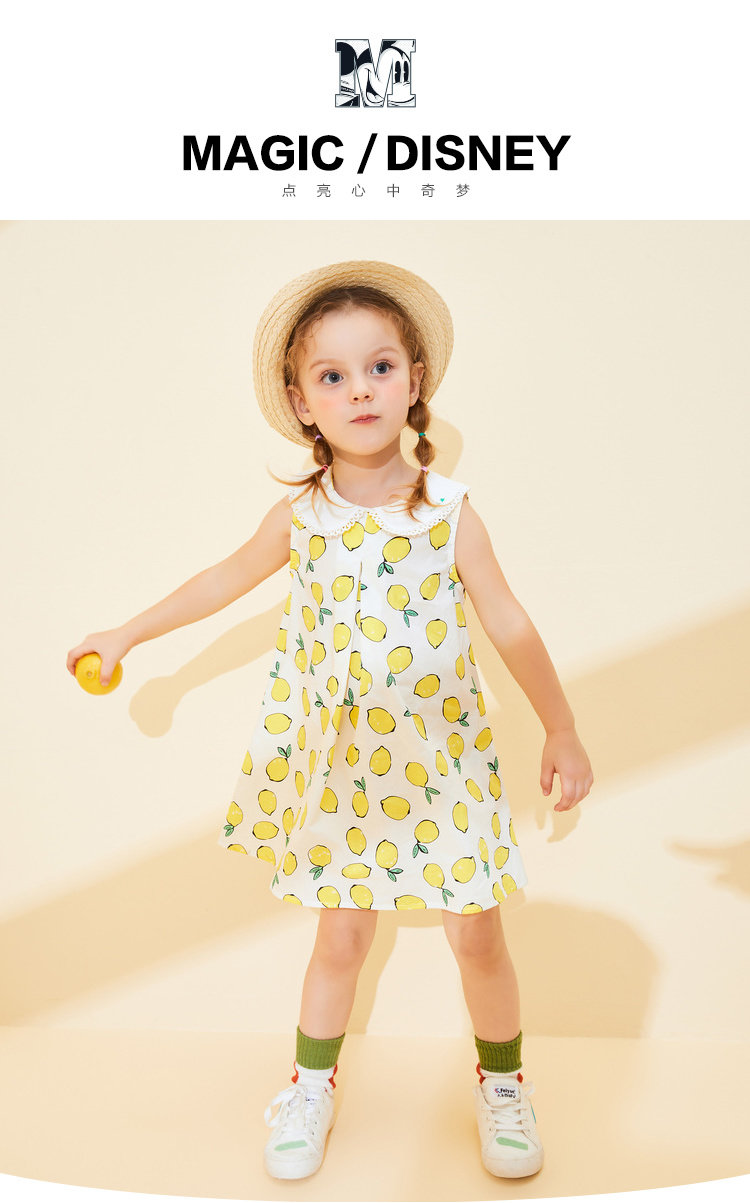 Дисней, летняя одежда, милая лимонная юбка на девочку, мультяшное платье без рукавов, детская одежда