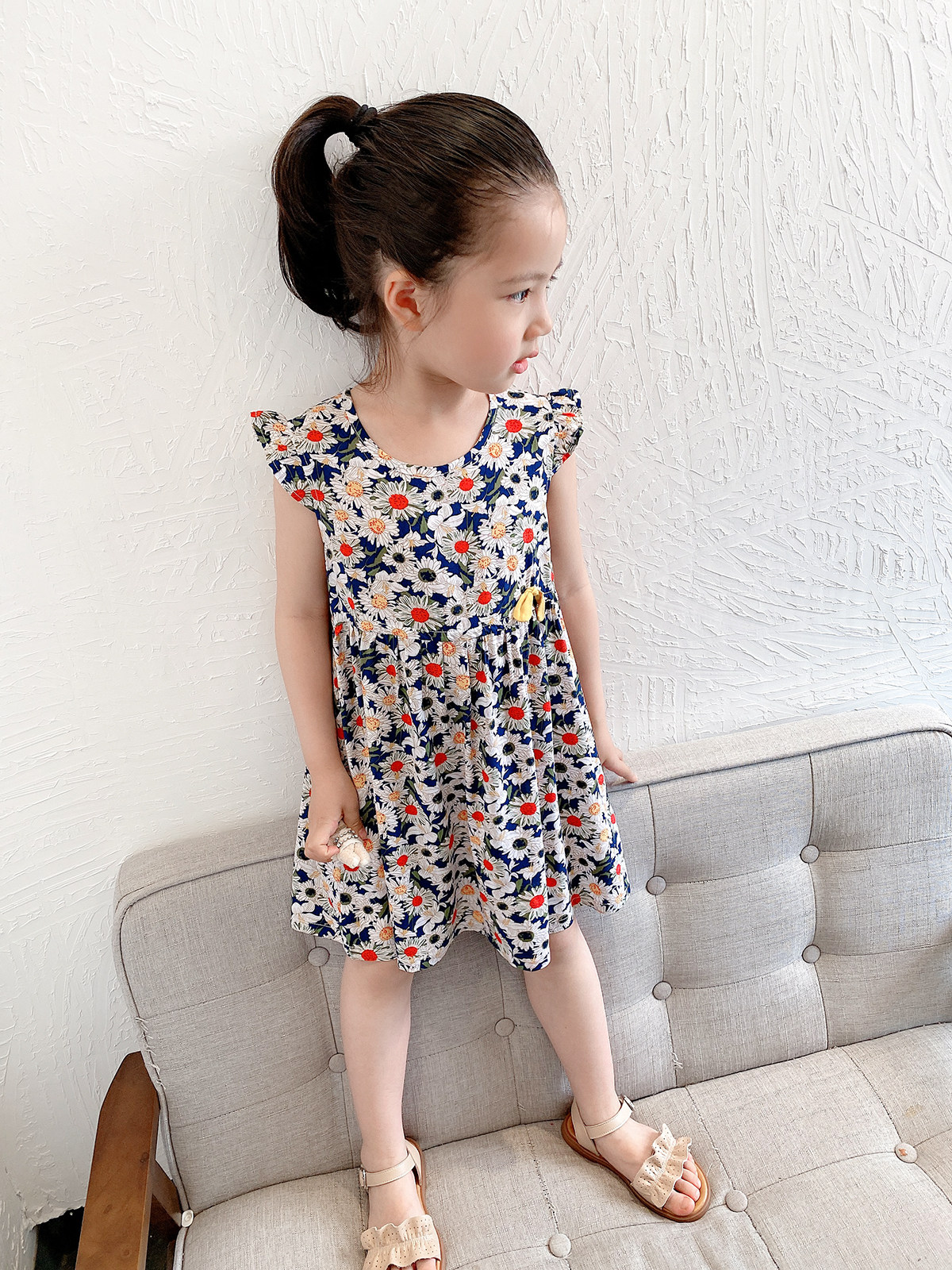 Небольшой дизайн с летающими рукавами, трехмерный бант на талии, милый мультфильм.