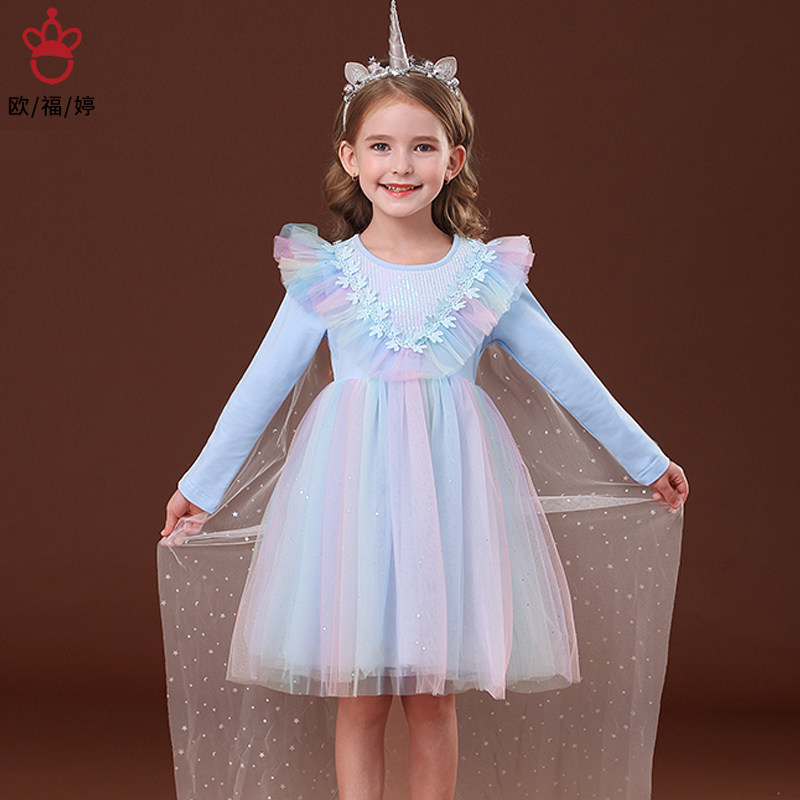 Боди, хлопковый осенний детский радужный наряд маленькой принцессы, в западном стиле, «Холодное сердце»