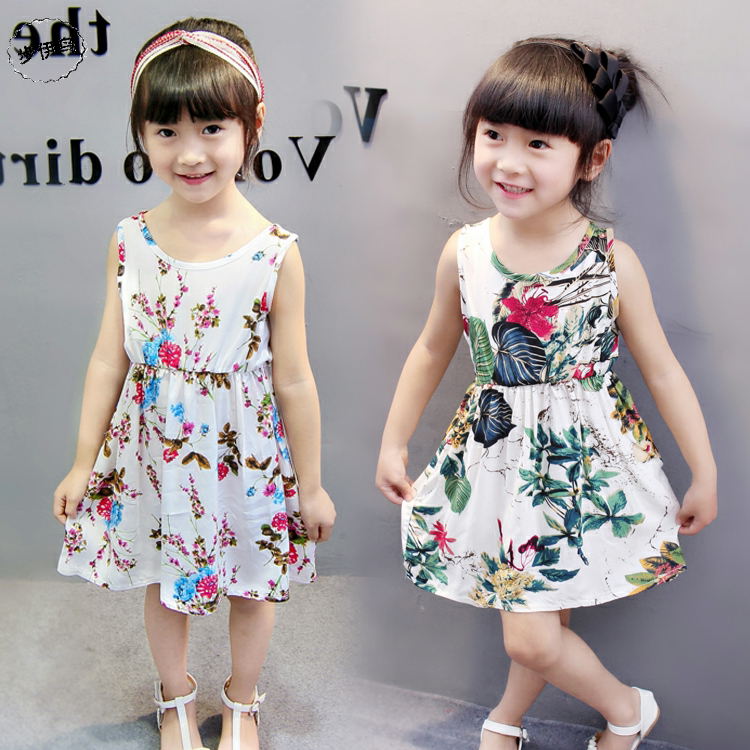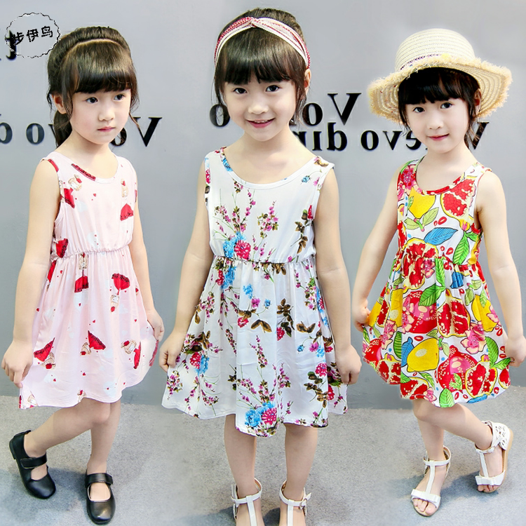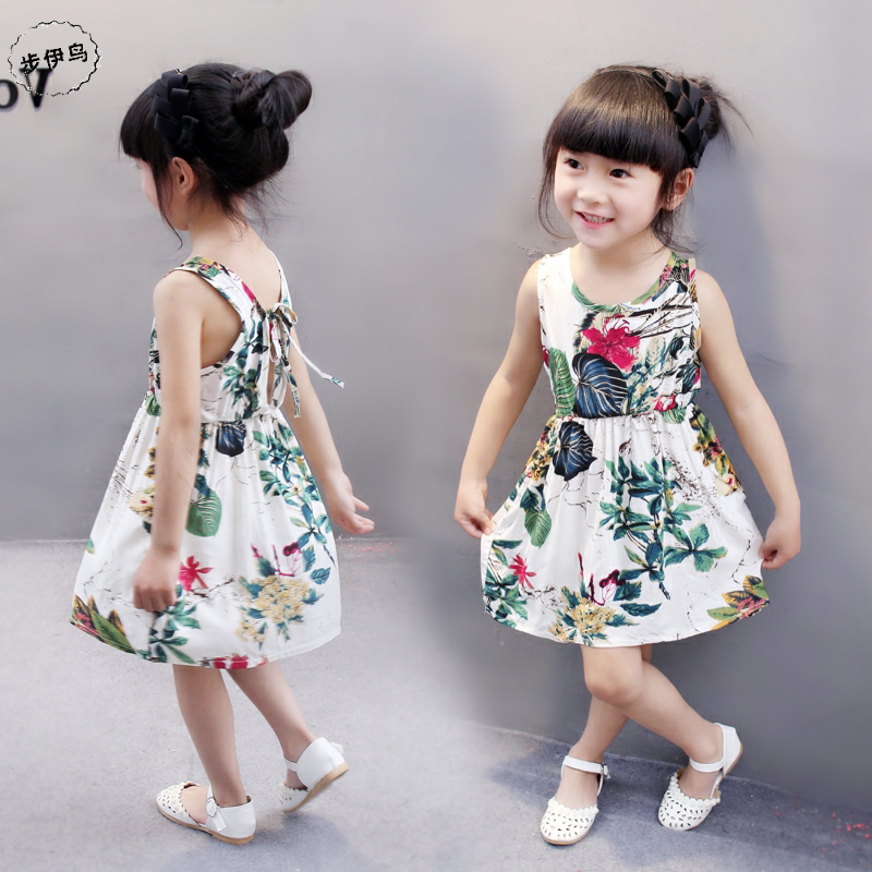 步伊鸟 Летняя детская юбка, платье без рукавов, детская одежда, цветочный принт, в корейском стиле
