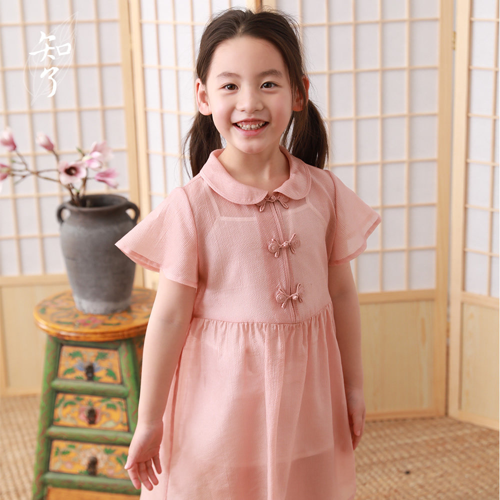 Летнее детское платье с коротким рукавом, детская одежда, китайский стиль