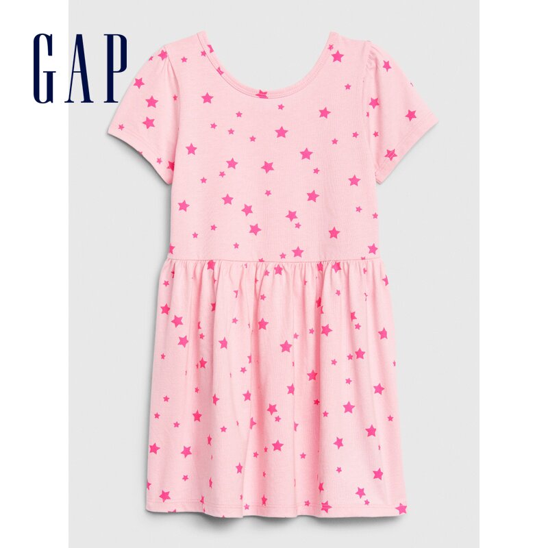 Gap Хлопковое летнее платье с коротким рукавом с круглым воротником, юбка, в западном стиле, детская одежда