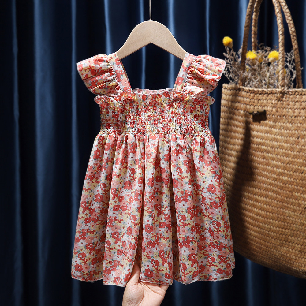 Летнее платье, детская летняя одежда, юбка на девочку, наряд маленькой принцессы, в западном стиле, в цветочек, в корейском стиле