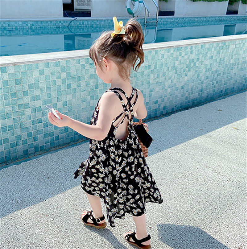 Летняя юбка на девочку, платье, платье-комбинация, в цветочек, в западном стиле, в корейском стиле