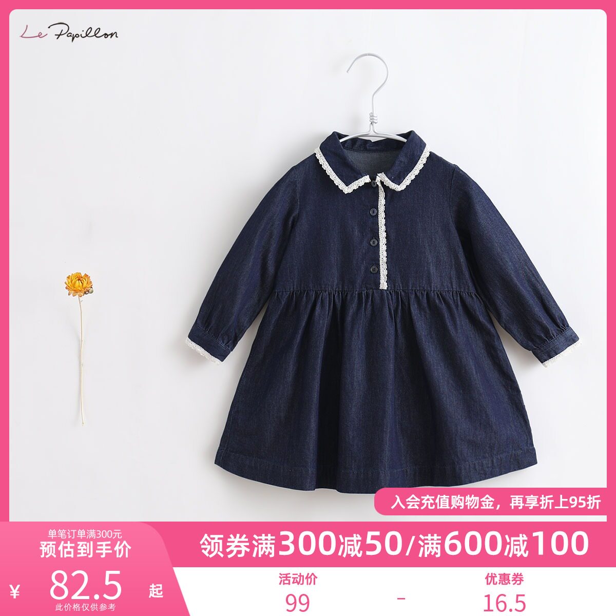 [Французская серия Mark Jeanne] Весеннее джинсовое платье для девочек, детская юбка, весна и осень 91223