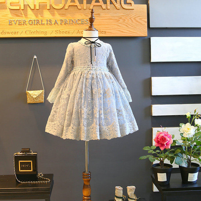 Весенний осенний кружевной наряд маленькой принцессы, лонгслив, платье, в западном стиле, в корейском стиле, из фатина
