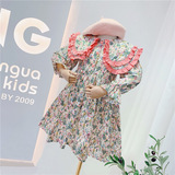 Осеннее хлопковое платье, лонгслив, наряд маленькой принцессы, цветочный принт, в корейском стиле, детская одежда